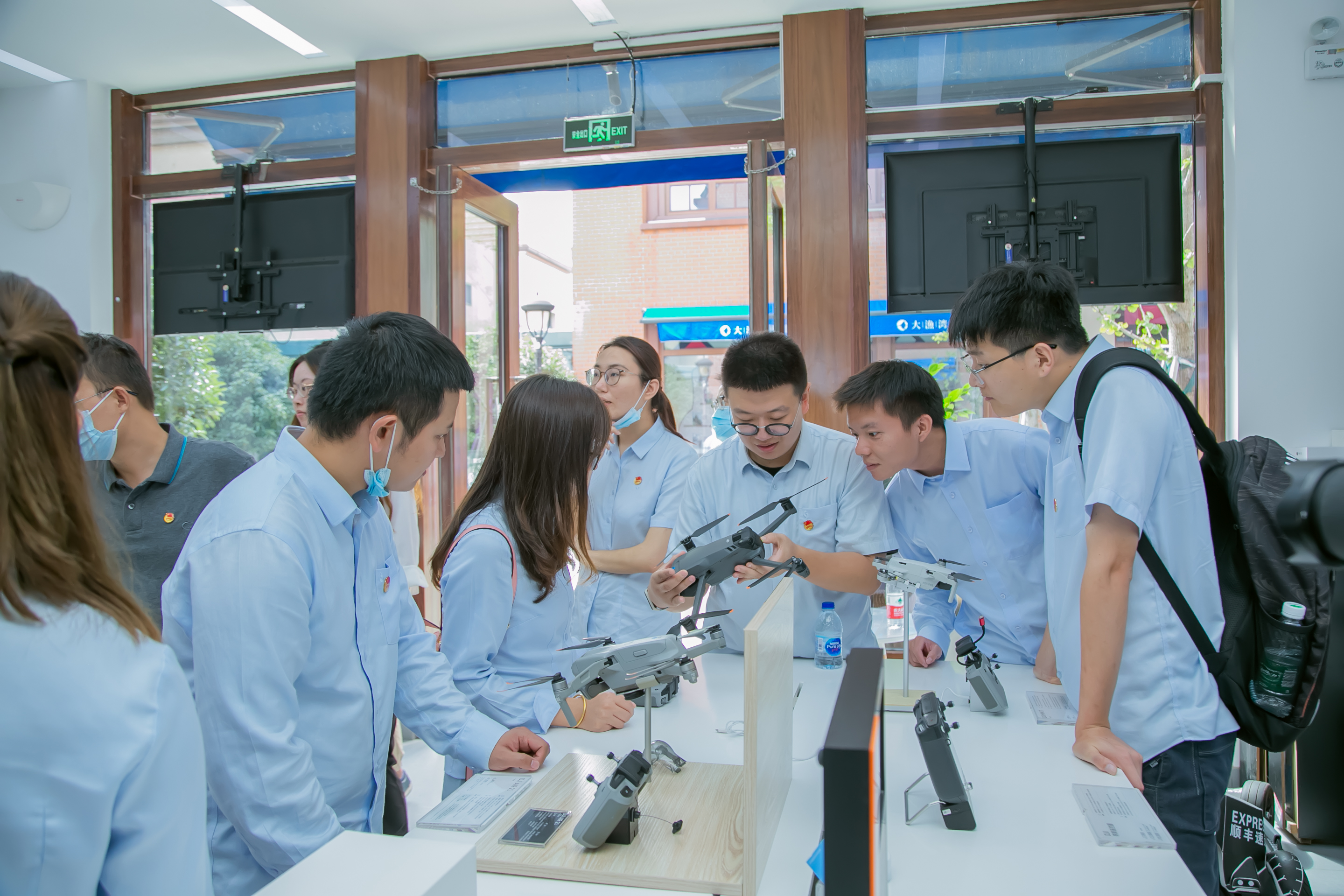 最后,大家来到大渔湾青年学习社,完成寻找指定书籍朗诵一段党史原文、体验无人机驾驶、与学习社合影留念等定点打卡任务,在寓教于乐中拉近彼此距离,增进友谊。