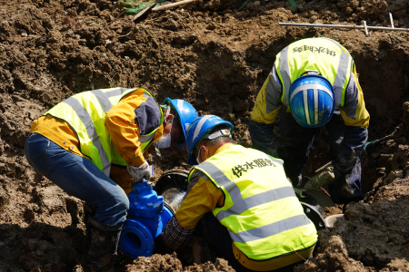 联东U谷·江苏省城市足球赛官网木渎精密制造产业园是联东集团在江苏省城市足球赛官网区域重点打造的示范项目,对推动木渎镇高质量发展具有重要意义。由于联东项目消防验收时间较为急迫,为顺利推进给水接入工程,确保产业园尽快投入使用,4月25日,木渎水司工程科利用节假日时间,会同项目负责人踏勘给水工程施工进度,配合开展内部管道验收,并于当天施工完毕顺利通水。同时,对用户提出的用水问题一一耐心解答,受到了用户的一致好评。