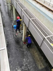 相城水厂沉淀池运行至今已有十余年,部分出水槽出现倾斜、开裂、破损等情况,各组沉淀池出现了不同程度的不均匀沉降。为保障高峰供水安全,相城水厂前期协同生产处认真调研、周密计划,将螺栓拆除后通过千斤顶固定调平,再用螺栓紧固,并在干燥情况下通过灌胶的方式,将缝隙填平,成功修复了集水槽,赶在高峰供水前彻底解决了问题。