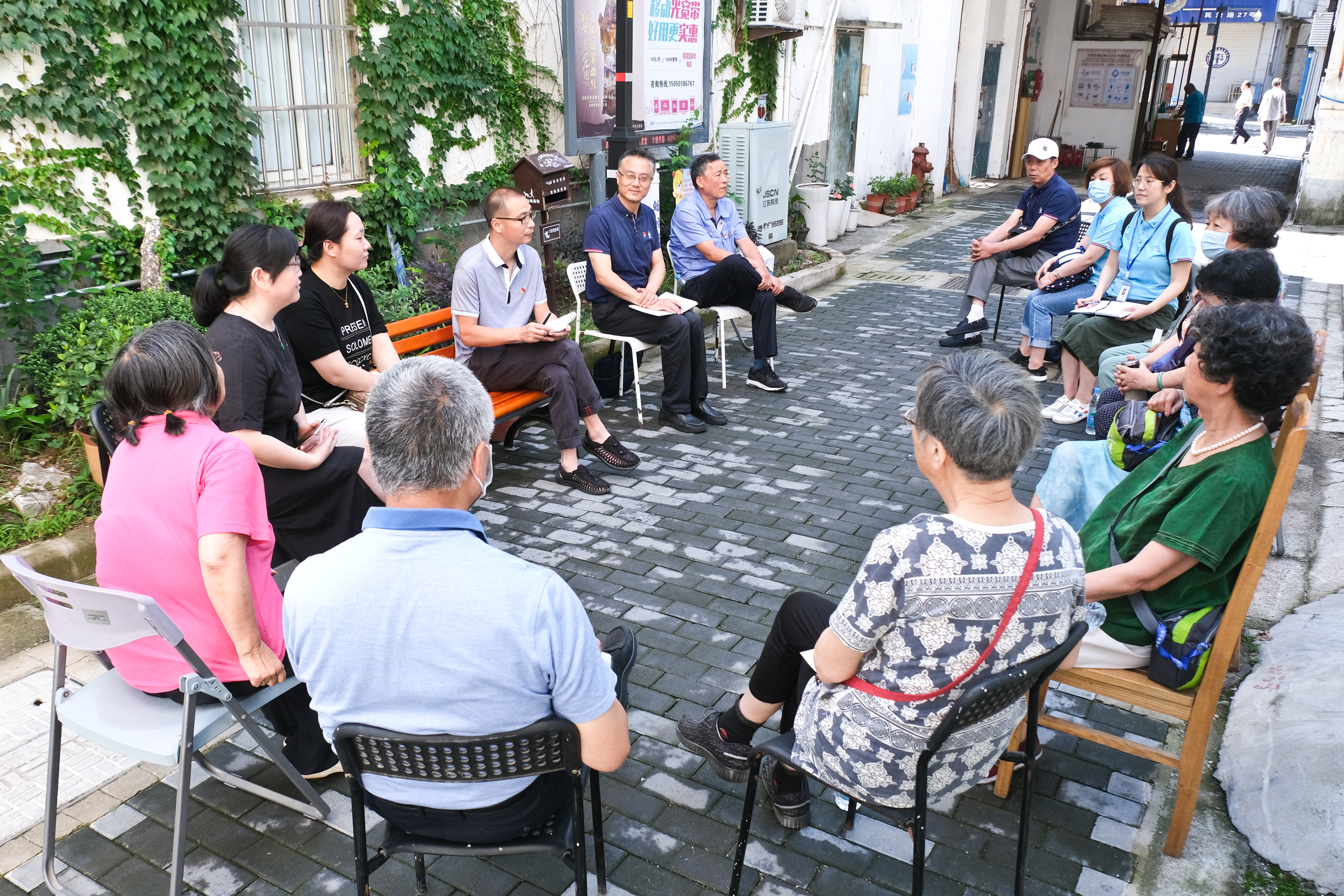 6月19日上午,市自来水公司党委副书记、副董事长、总经理钱勇来到民治路42号大院内,与居民代表进行了一场别样的户外座谈会。