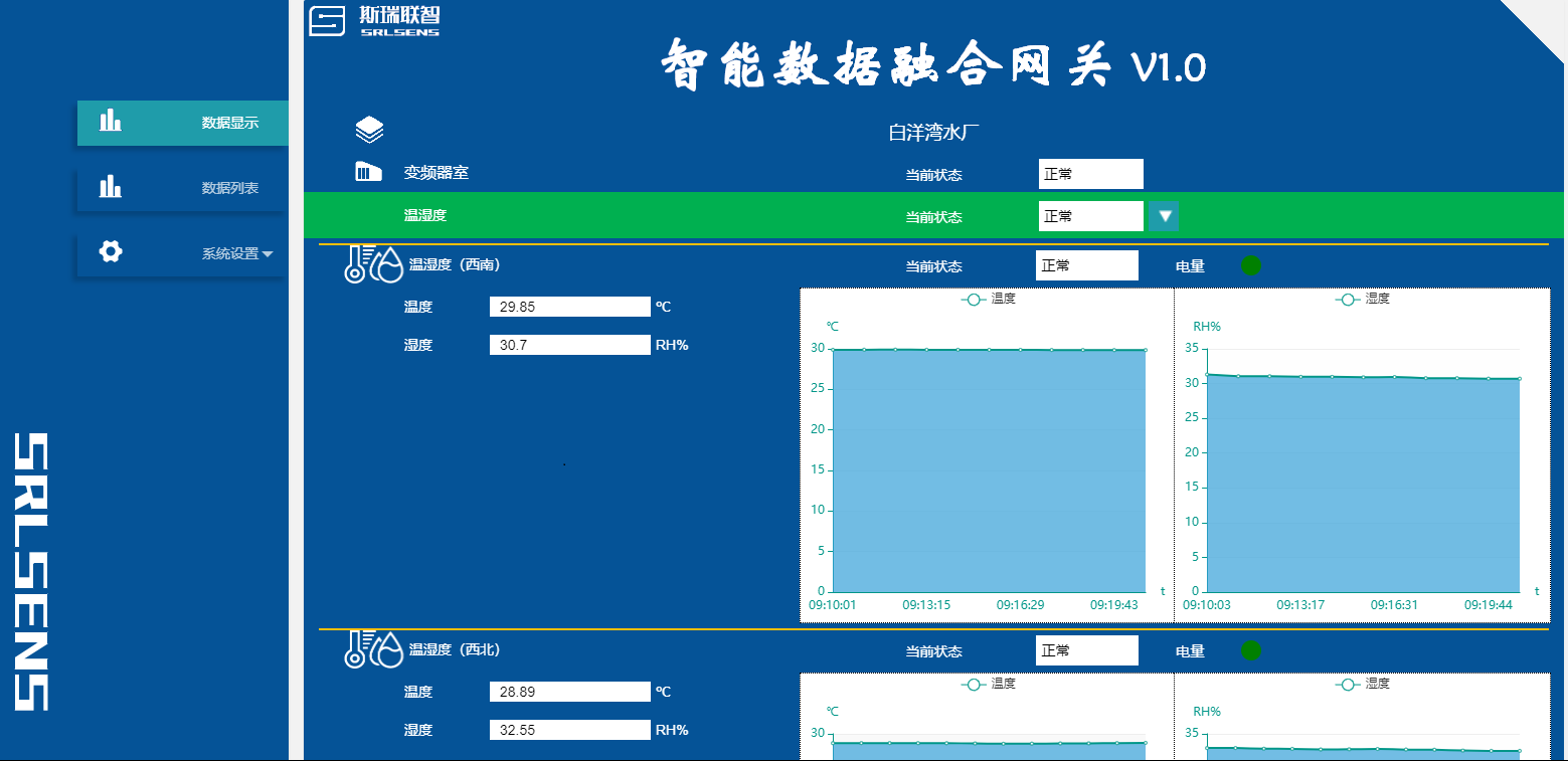 本次项目在水厂高压变频器室设置了4个无线温、湿度监测点,这些监测点不需布线、不需电源,通过现场网关借用厂内原有办公网络,即可将现场数据上传至监控电脑,巡检人员也可在现场通过手机实时查询温、湿度数据。通过网关中设置的报警限值,系统可自动发送报警信息至监控电脑,极大地提高了生产控制系统的安全性。