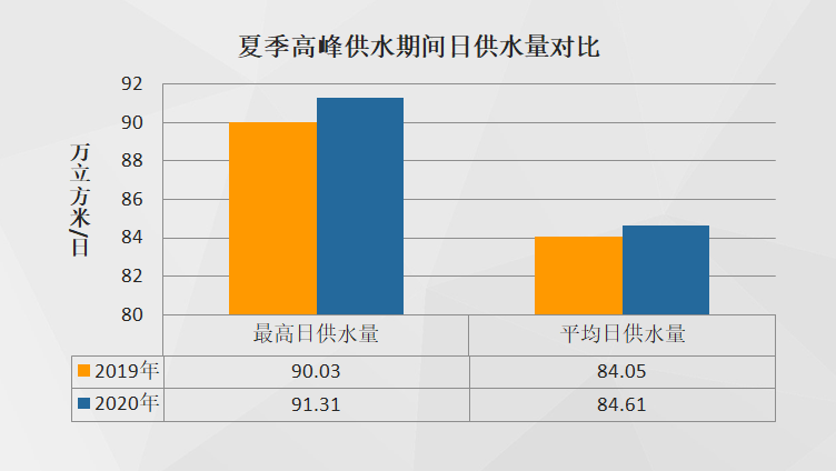 10月以来随着气温降低,市自来水公司日供水量逐渐回落。今年夏季,公司围绕水源地保护、水质监测、调度生产和管网运维等方面未雨绸缪、多措并举,供水水质、水压合格率均为100%,顺利实现了今夏高峰供水的平稳过渡。期间,公司平均供水量约84.6万吨/日,较去年同期增长约0.7%。最高日供水量91.31万吨,再次创下公司单日供水量新高。