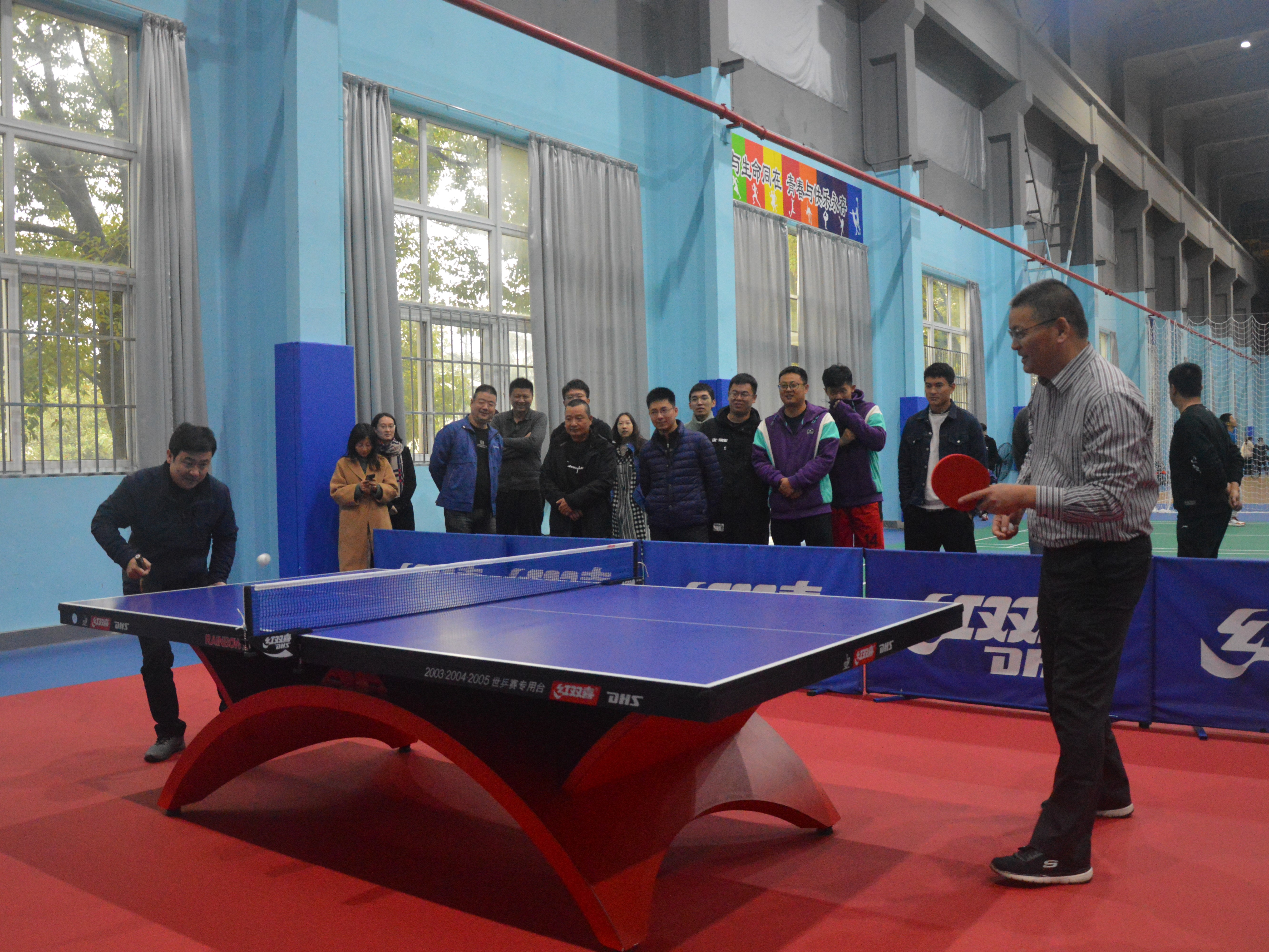 随后,集团陈卫安主席与公司孙林忠董事长进行了一场乒乓球热身活动,在场的篮球队、羽毛球队、兵乓球队队员也在各场馆分别开展友谊活动。