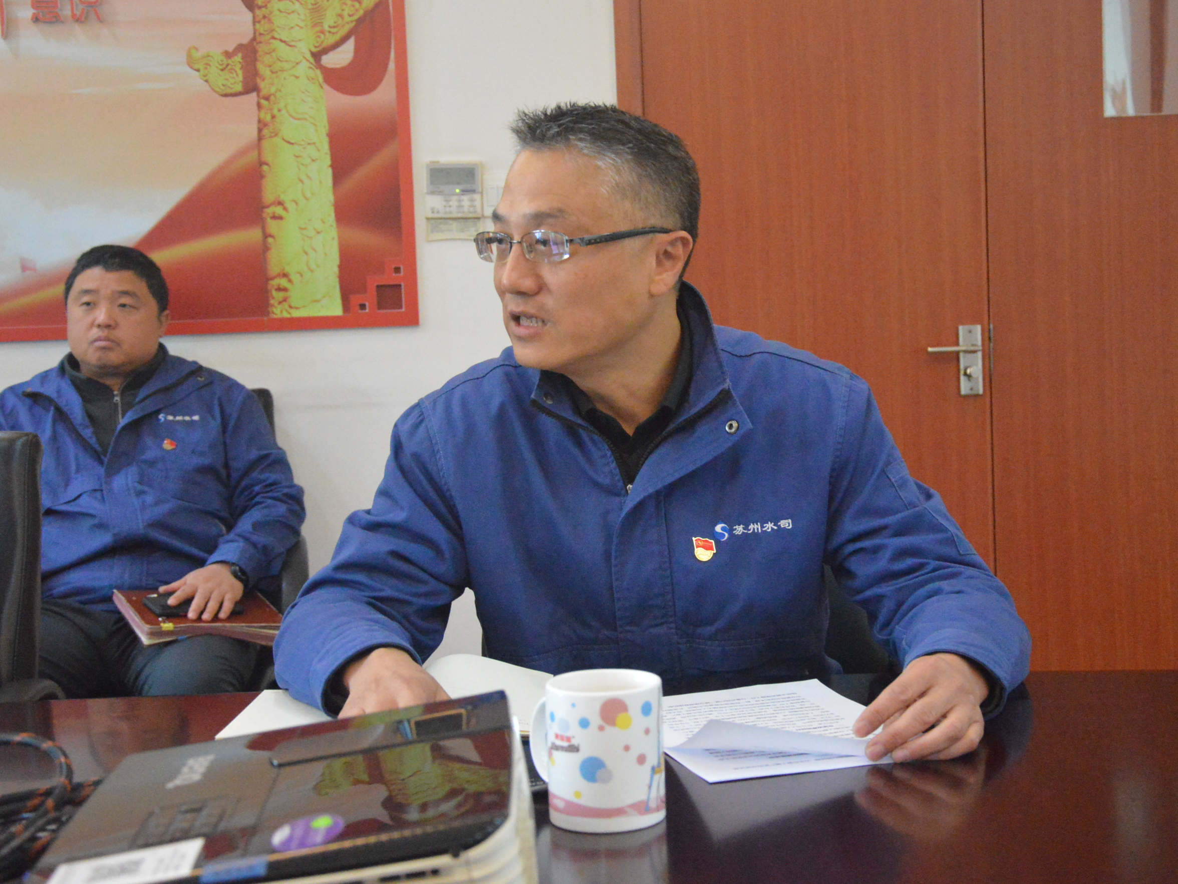 12月3日,市政府副秘书长张剑一行两人赴市自来水公司供水管网所、供水营业所联合党支部开展党建调研。江苏省城市足球赛官网水务集团党委副书记、副董事长、总经理陈隆,公司党委书记、董事长孙林忠陪同调研。