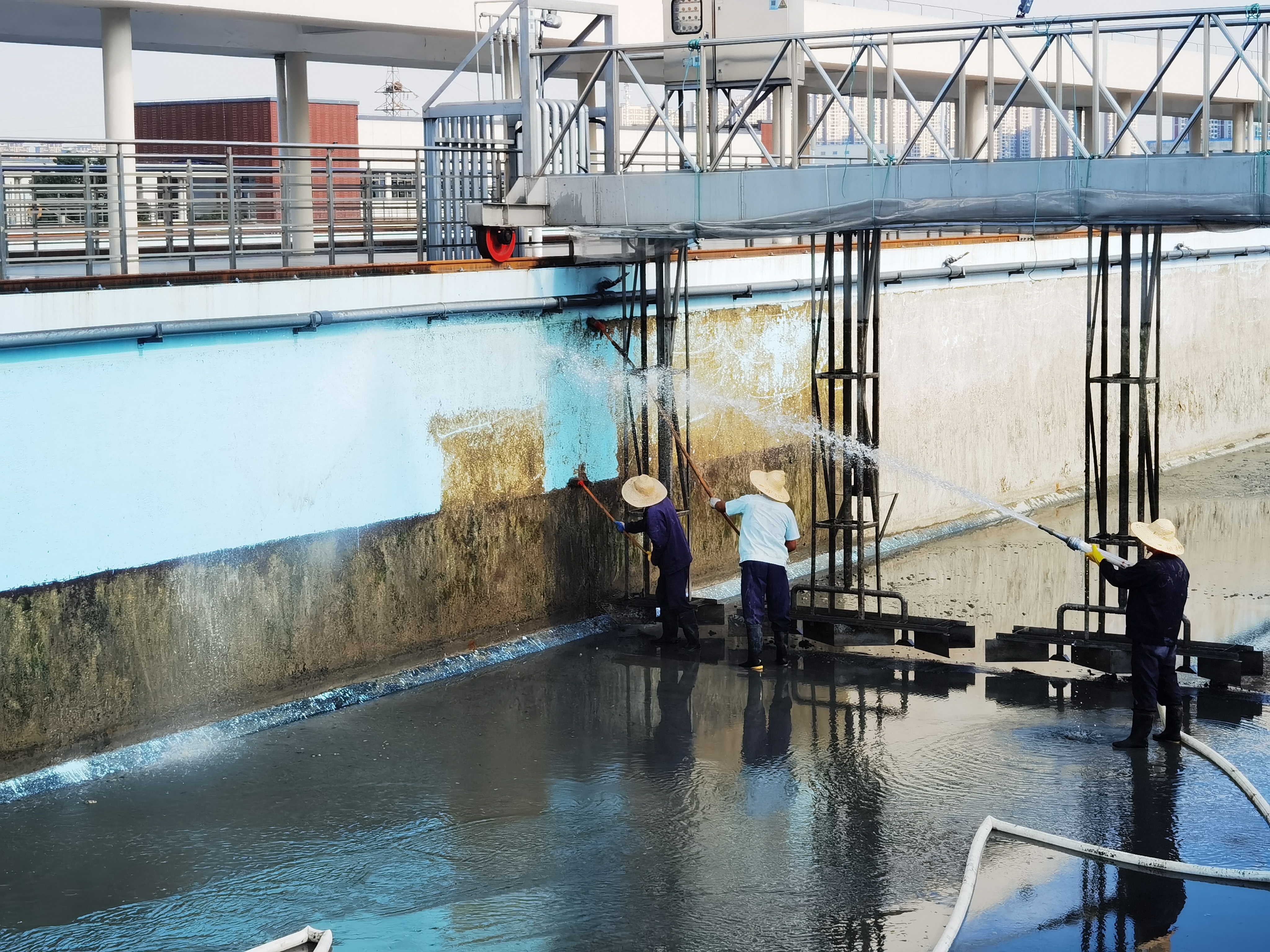 根据年度项目计划安排,白洋湾水厂提前制定了全面的修整清洗方案,与调度中心积极沟通协调清洗时间并调整厂内工艺,并与承包单位反复强调工作要求。从11月9起项目陆续实施,在安全保障措施得力的前提下,作业人员严格按照操作要求进行冲洗和洗刷,水厂技术人员全程跟踪,做好现场监护,确保作业安全,项目已于12月3日顺利完工。过程中水厂运行平稳,供水生产正常。