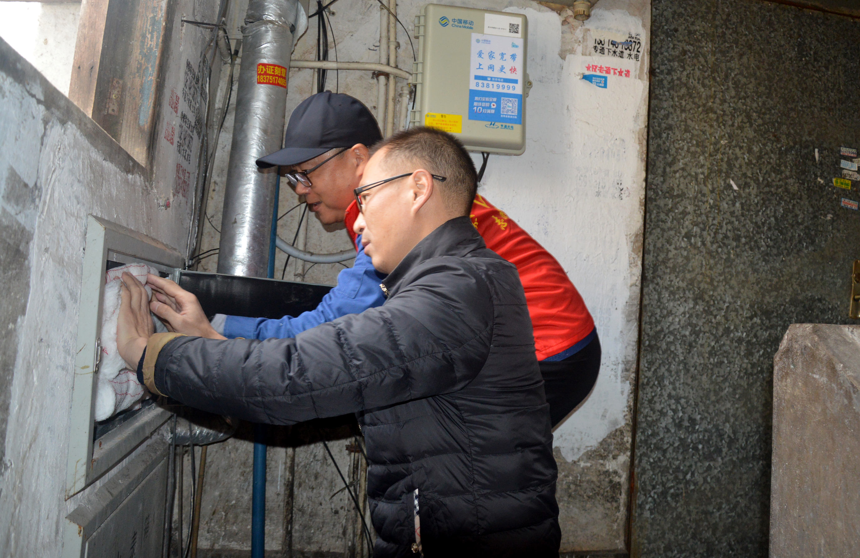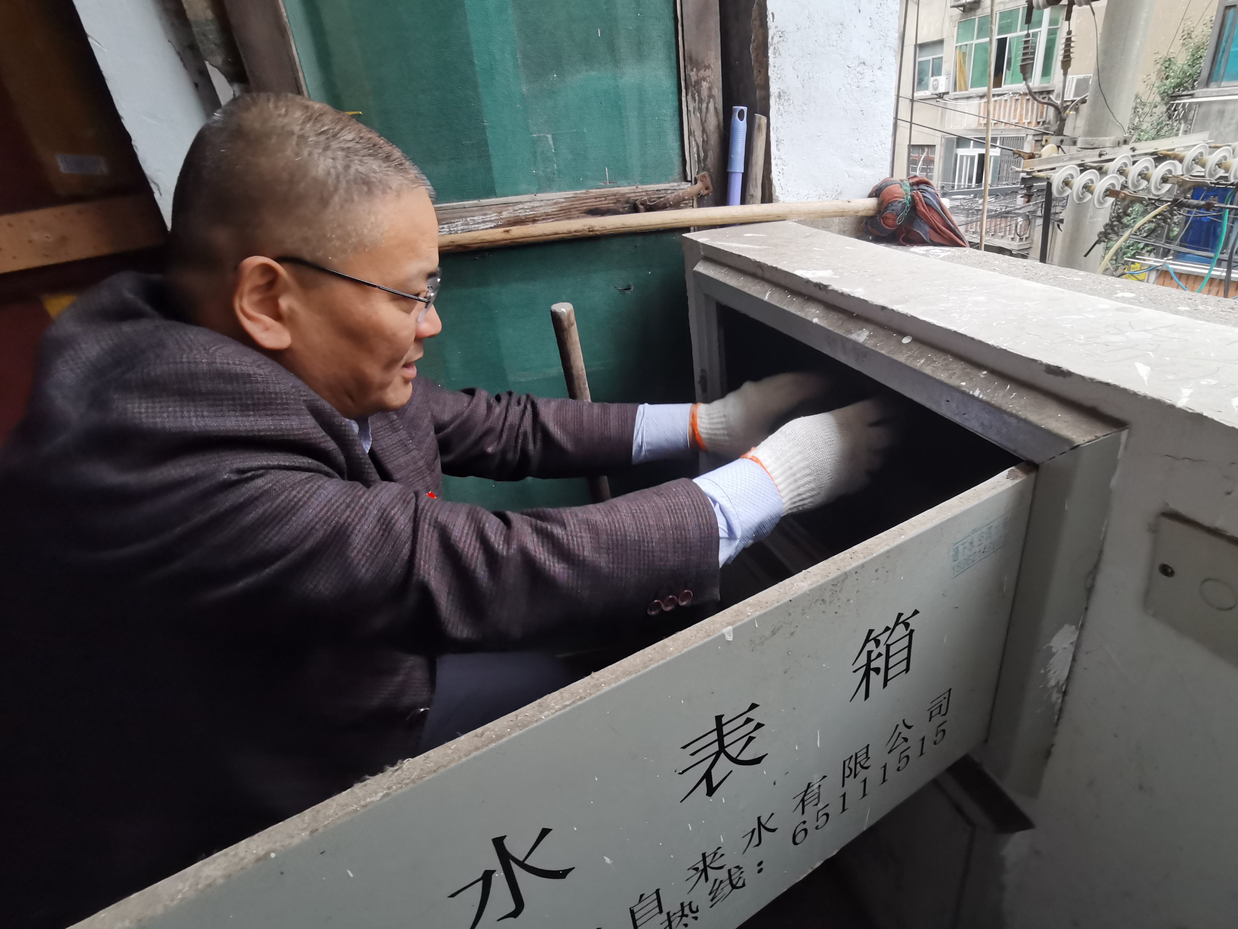 公司党委书记、董事长孙林忠在钟楼社区带领党员们检查社区楼道内单元阀、居民供水立管、槽板、水表箱的保温情况,并积极向钟楼社区党总支书记王秋月宣传水表防冻注意点,并详细讲解了公司抗寒保供的部署工作。