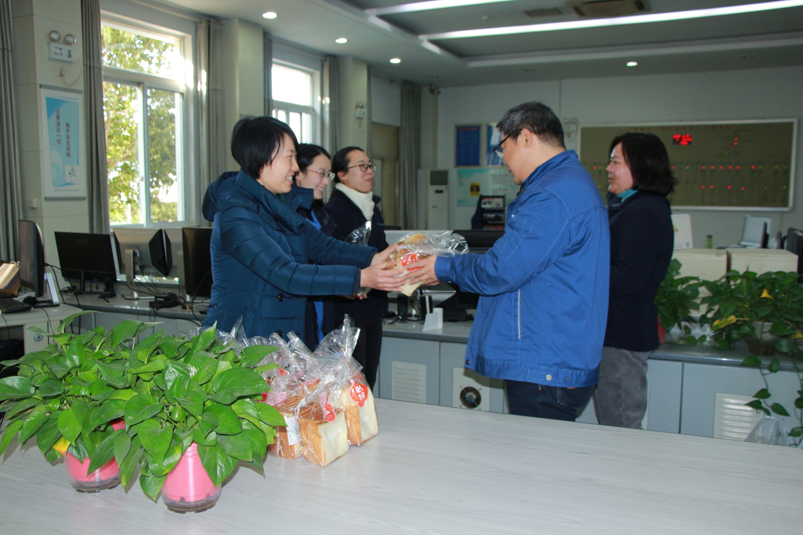 公司各分工会看望慰问了抗寒保供的一线职工,将精心准备的面包与饼干送到职工手中,并积极宣贯疫情防护知识。