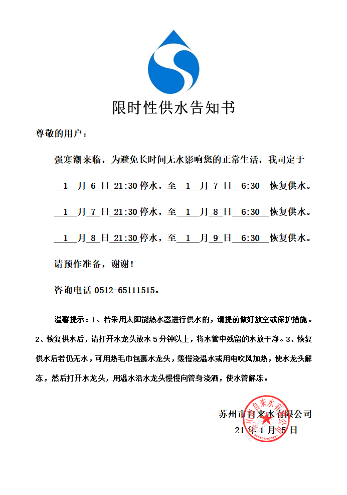 限时性供水区域如下: