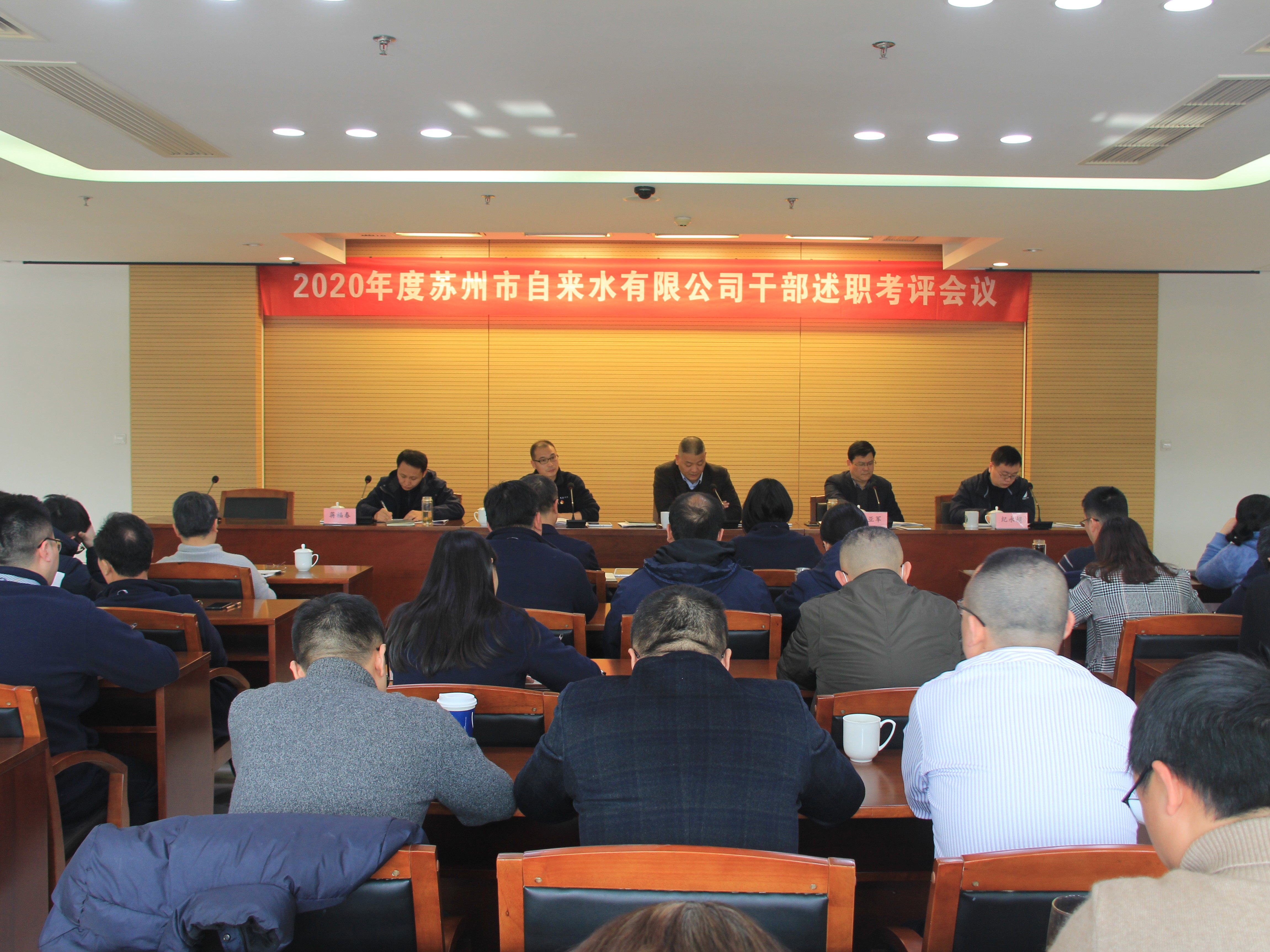 1月14日,市自来水公司召开2020年度领导干部述职考评会议,公司党委领导班子,全体中层干部和科室职工代表参加会议。会议由公司党委委员、纪委书记、工会主席夏亚军同志主持。