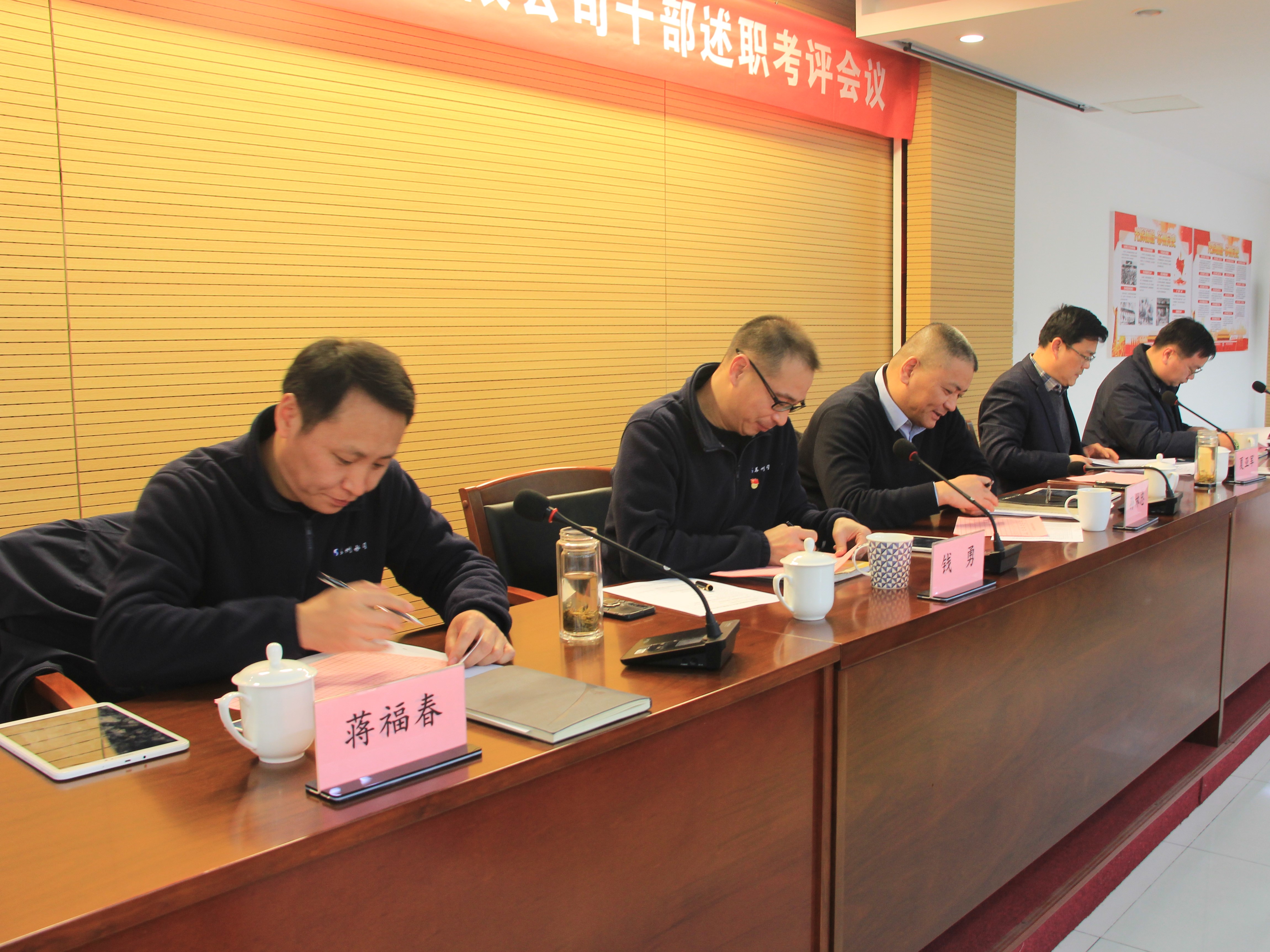 随后,各党支部书记就一年来支部党建工作职责进行述职,公司副总经理蒋福春、总工程师纪永超和工会主席夏亚军依次作现场点评。与会人员认真听取了领导班子述职述廉述意报告,仔细查看了中层干部2020年度述职述廉报告,并从德、能、勤、绩、廉五个方面对领导干部进行了无记名投票测评,并对公司选人用人工作进行了民主评议。