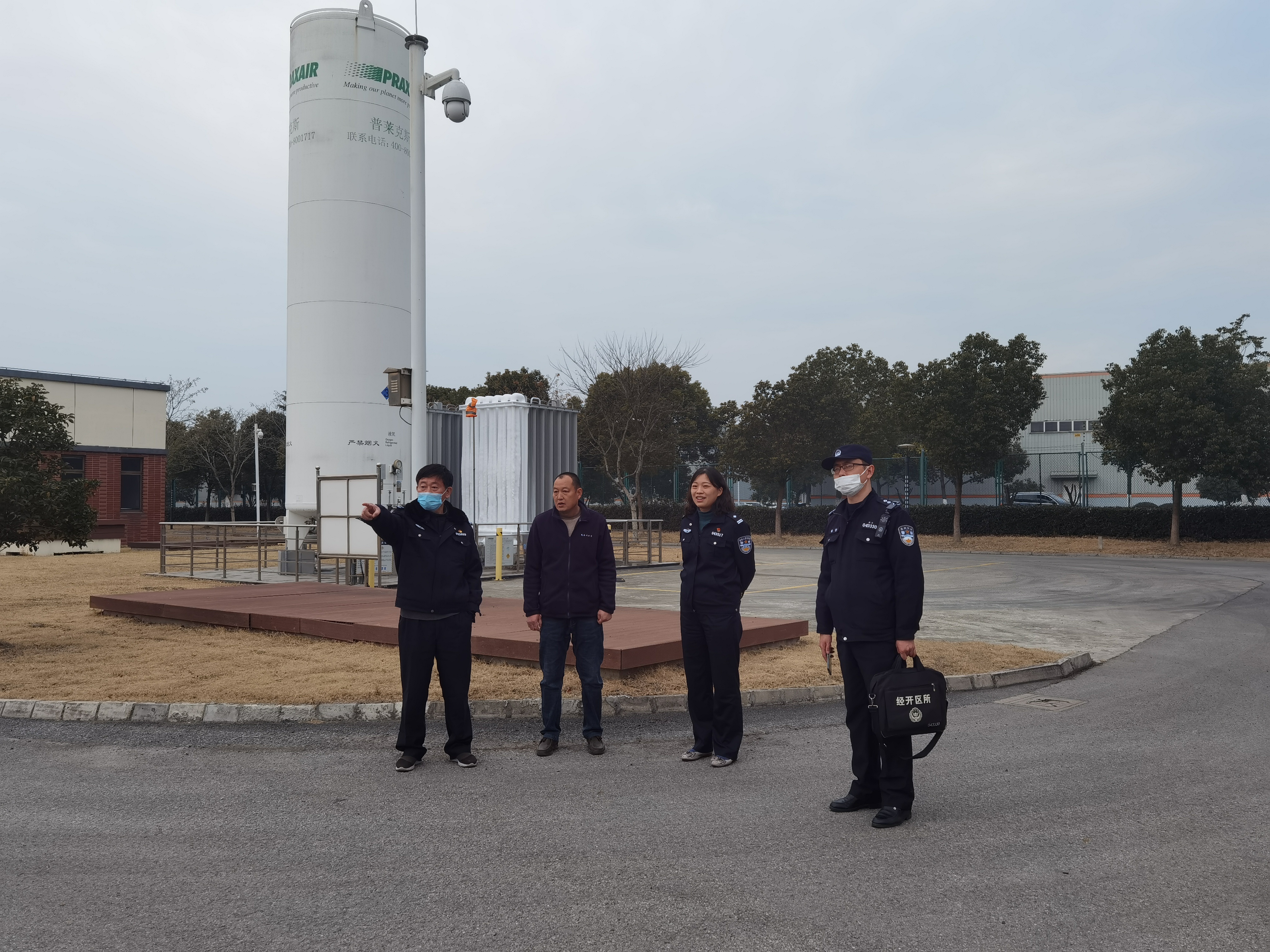 检查中,浒关经开区派出所姜所长详细询问了水厂现行生产工艺流程、治安内保工作及安防硬件建设情况,并查看了水厂人员的进出登记,调阅了相关视频监控。随后,检查小组现场检查了液氧站等重点部位。