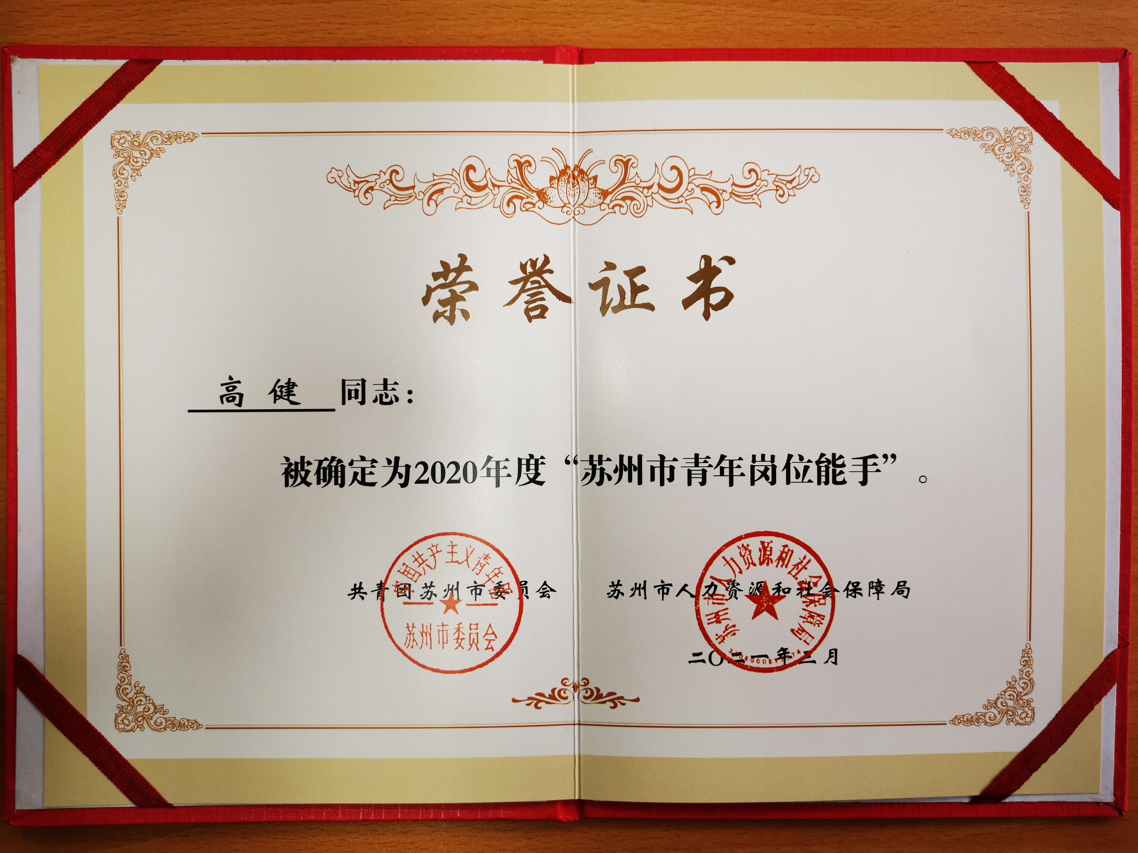近日,市自来水公司青年职工高健荣获2020年度“江苏省城市足球赛官网市青年岗位能手”荣誉称号。