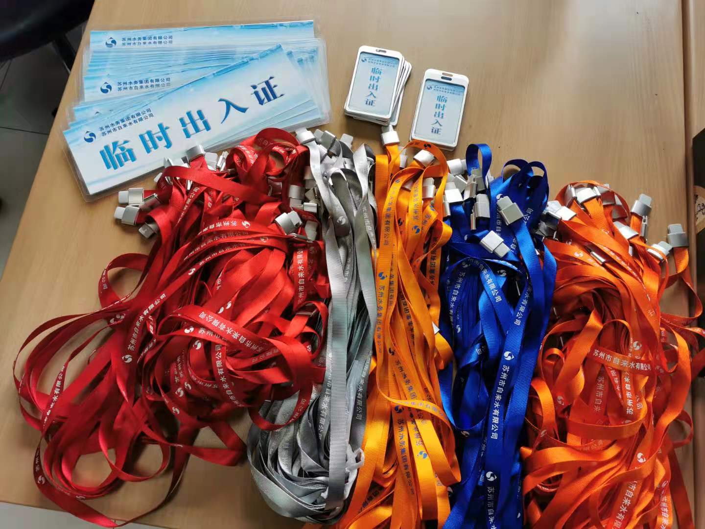 新制的临时出入证挂绳分为红、橙、灰、蓝、黄5种颜色,分别对应“参观检察人员”、“二期施工人员”、“临时业务人员”、“保洁绿化人员”与“水检业务人员”。这种方法能使水厂安保人员更便捷、更高效地识别进出人员身份信息,及时排查可疑人员。同时,水厂进一步完善访客制度,要求来访人员进行扫码识别、测温登记、规范着装、全程佩戴临时出入证,并提醒厂内安保人员增强安全意识、加强巡逻,严把水厂出入关。