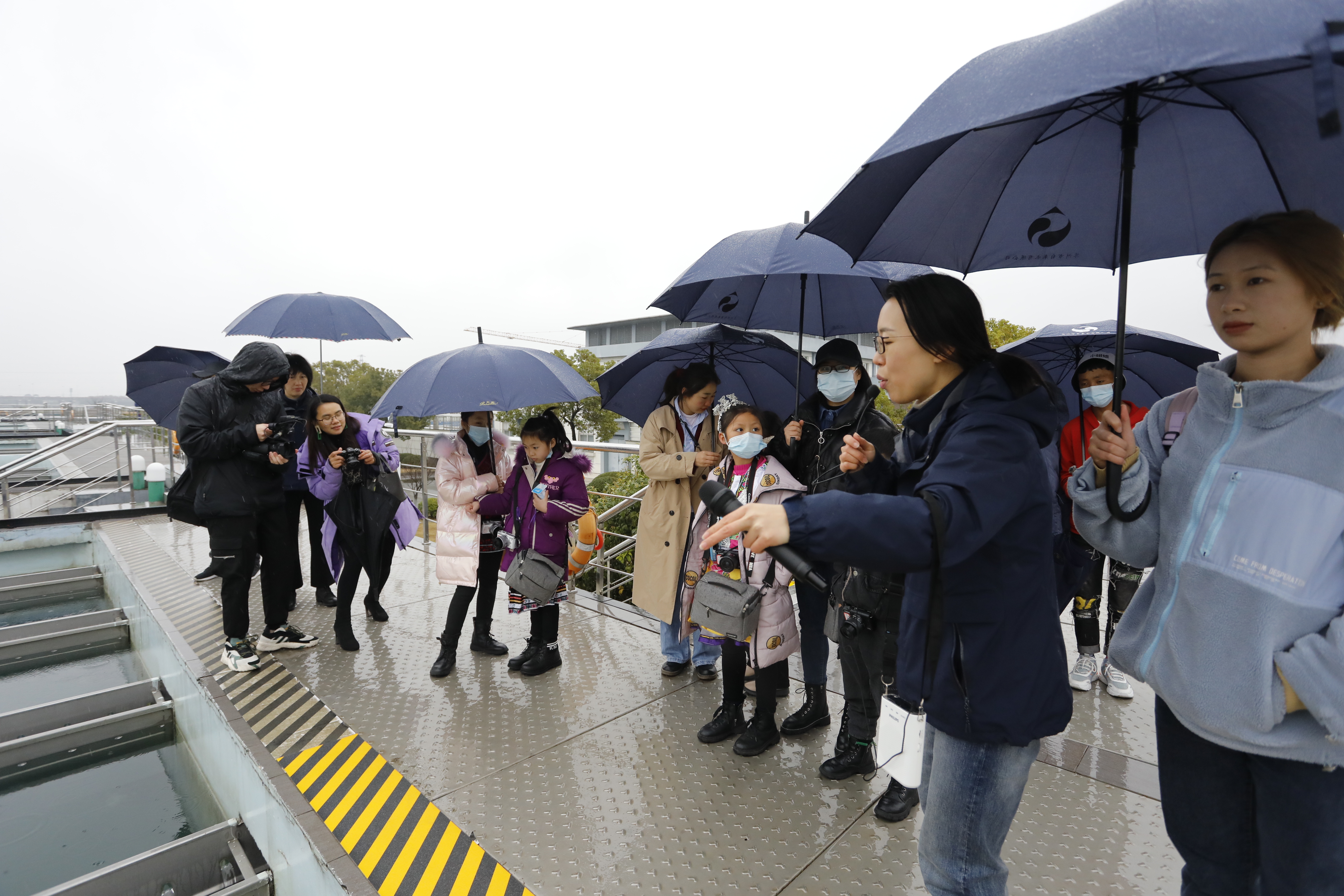 孩子们沿着水处理工艺顺序,依次参观了沉淀池、砂滤池、炭滤池等制水构筑物,对自来水生产的混合、反应、沉淀、过滤、消毒等制水工艺有了初步了解。大家认真听、仔细记,不时还和同伴交流着自己的发现。
