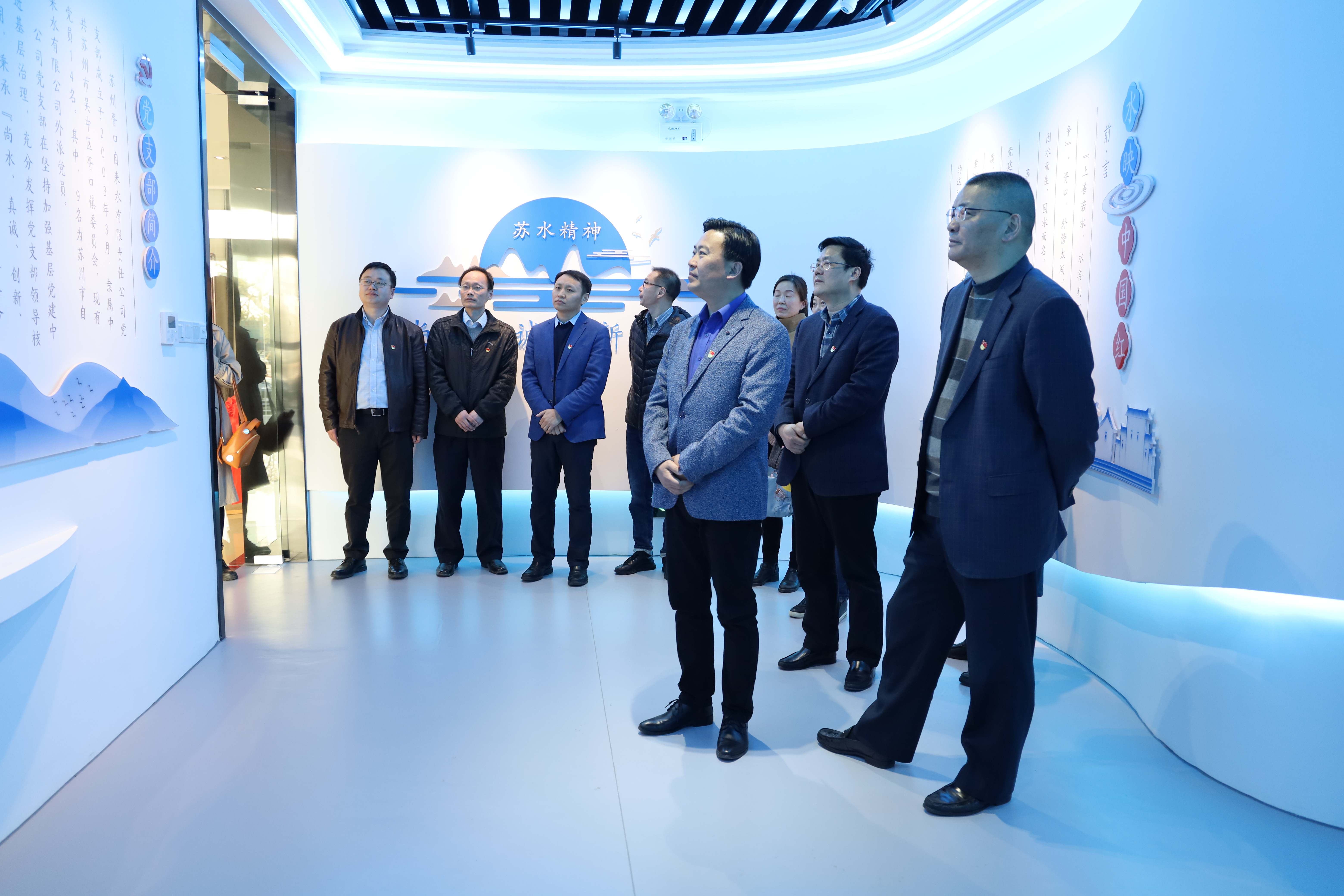 在胥口水司,吴文胜书记与自来水公司党委书记、董事长孙林忠共同为胥口水司“水映中国红”海棠花红先锋阵地揭牌,并饶有兴趣地听取了党建馆的讲解。