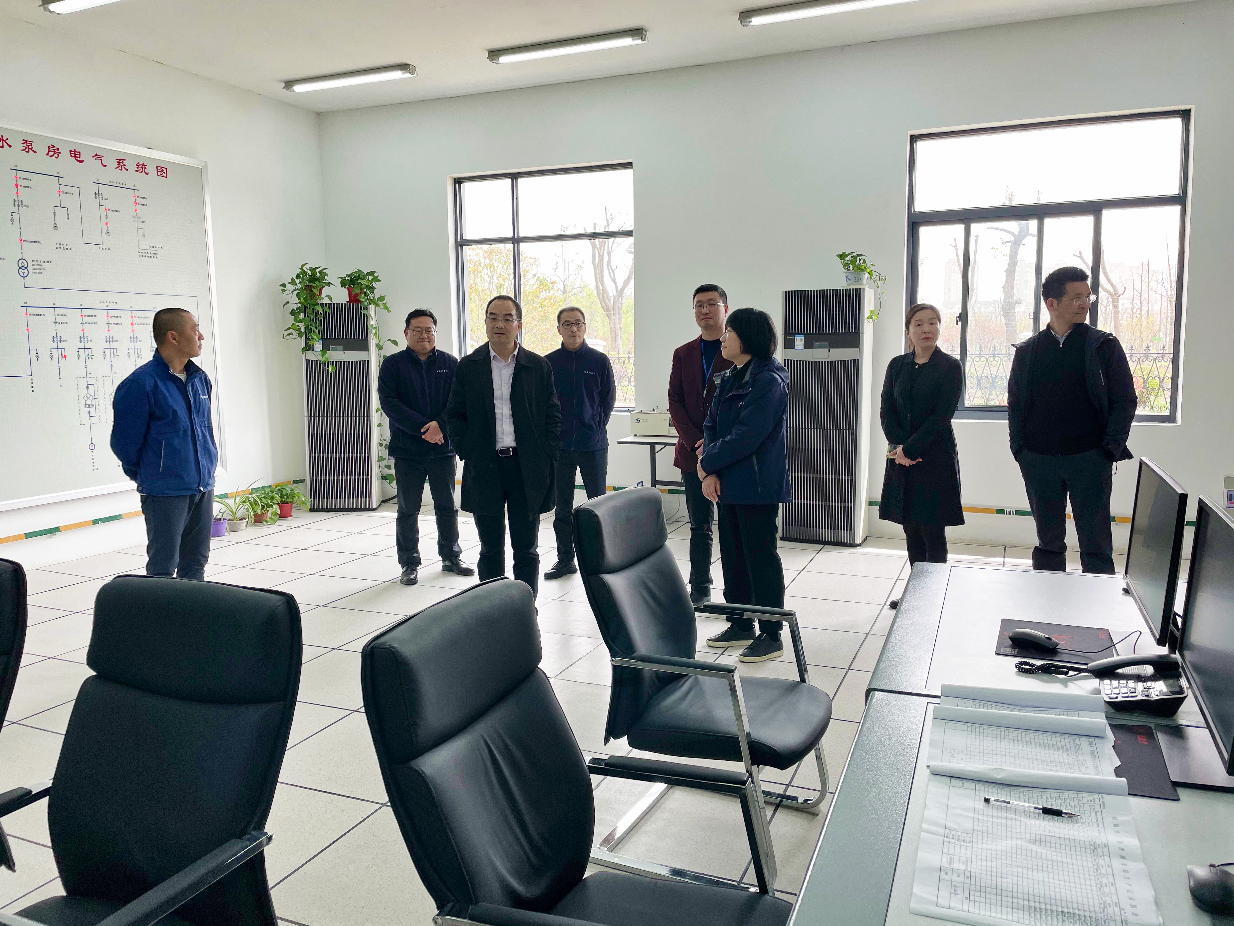 徐董一行先后检查了泵站应急投加装置、泵房中控室、水质仪表间等现场部位;重点了解了设备设施、危化品存储使用及应急物资配置情况;对泵站建设、试运行、自控调试、水源水质及职工当班进行了详细了解。徐国忠董事长对阳澄湖泵站当前运行管理情况表示肯定,要求公司持续关注阳澄湖原水水质情况、加强分析比对,为双水源供水积累丰富的生产经验。同时要加快推进泵站建设扫尾工作,及时查漏补缺,助力迎峰度夏;市自来水公司要进一步对标“无人化”值守要求,加强自控优化,以高标准、有特色、显亮点为目标高效推进工作。