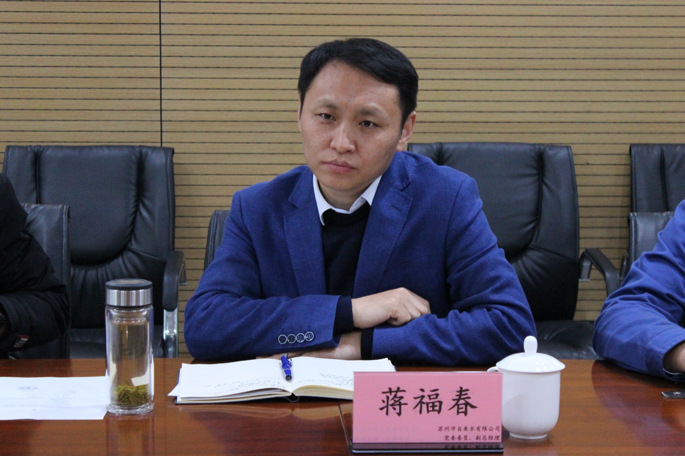 近日,阜宁县自来水有限公司一行5人赴公司交流学习,公司党委副书记、总经理钱勇,党委委员、副总经理蒋福春陪同交流。