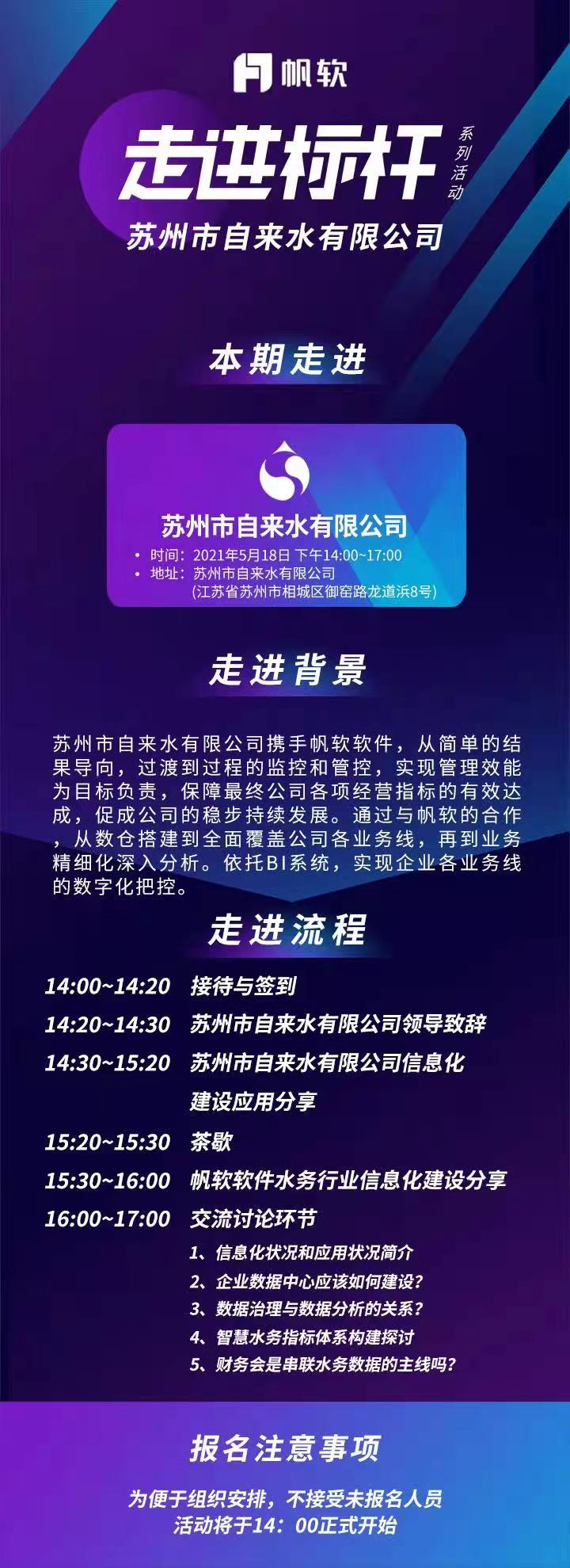 为了更好的拓宽企业数字化转型思路,近期,市自来水公司信息处应周边多家水司信息部门邀请负责组织开展一场以供水行业信息化为主题的沙龙活动。通过周密筹备,主题沙龙活动于5月18日下午在公司顺利举办。活动由公司信息处与帆软公司联合主持,江南水务、常州江河港武水务、江苏省城市足球赛官网新区自来水等公司信息技术代表参加。主题沙龙包含三个环节:江苏省城市足球赛官网分享企业信息化的现状与智慧水务建设思路;帆软公司介绍帆软软件在水务行业的应用案例;各与会水司代表围绕信息化应用现状、企业数据中心建设、数据治理与数据分析等大家关心的五个热点话题展开交流讨论。会上大家畅所欲言,直面水务信息化建设的痛点与难点,分享了各自信息化建设的经验与思路。