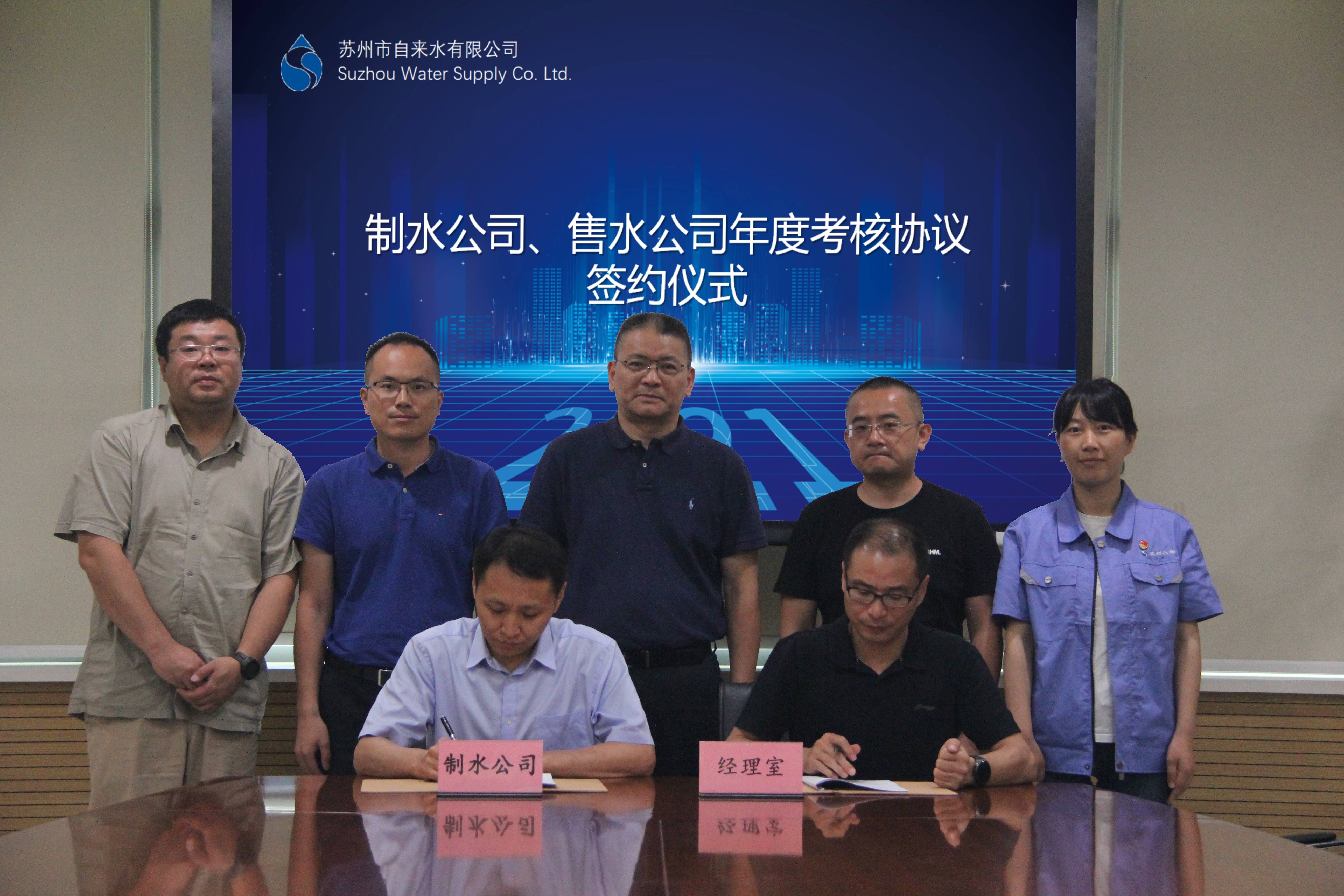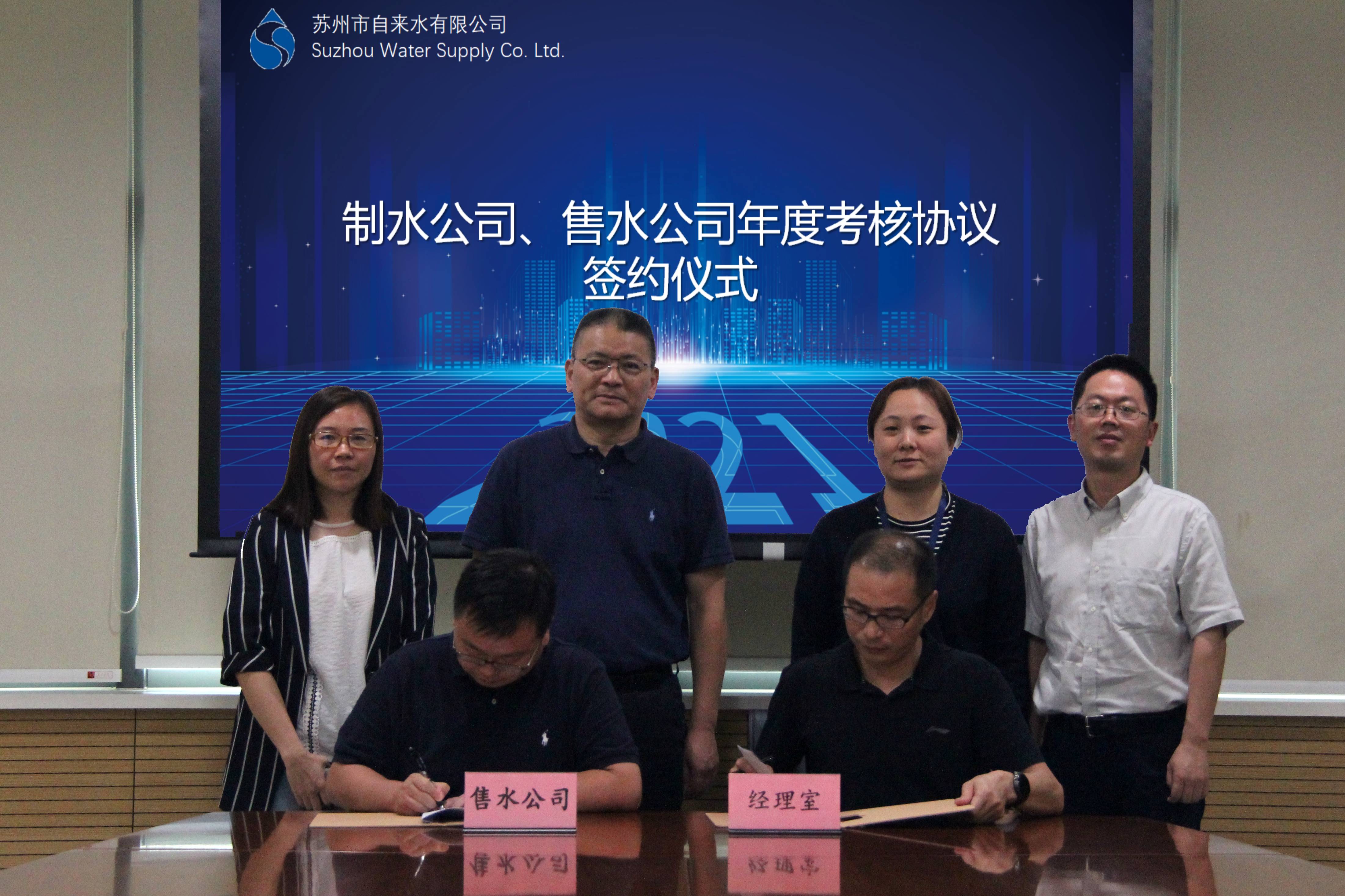 6月15日下午,市自来水公司经理室与内设制水公司、售水公司签订年度考核协议。公司党委副书记、副董事长、总经理钱勇代表公司经理室,公司副总经理蒋福春,总工程师纪永超分别代表制水公司、售水公司参与签约,公司党委书记、董事长孙林忠出席并见证整个签约过程。