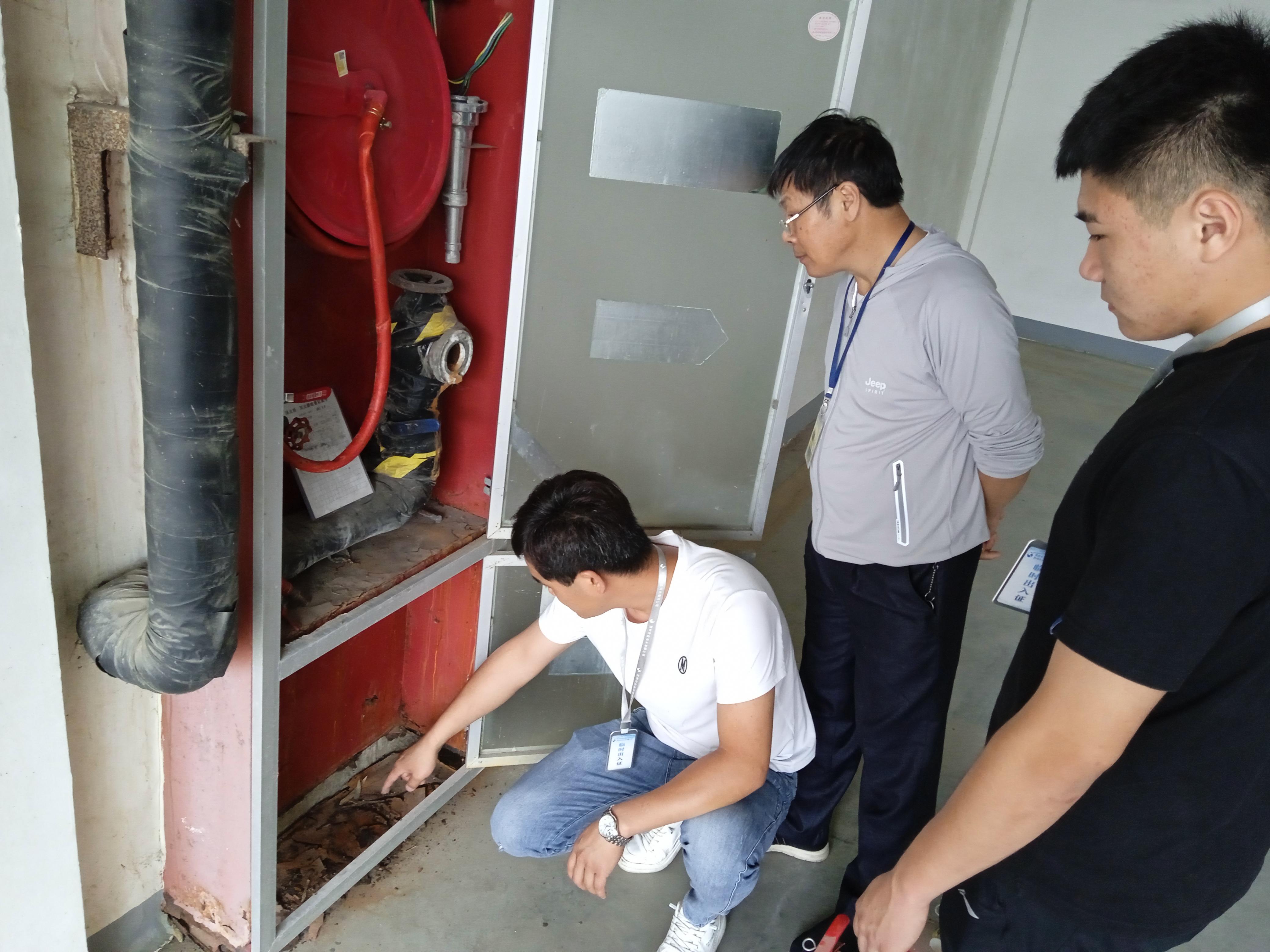 经检查发现,大楼内部分消防设施存在轻微老化的情况,多个灭火器即将过期。公司安管处第一时间联系维修力量,组织专业人员更新了20个消防软管卷盘、2个消火栓箱体、40具灭火器和13条老旧消防水带,检修了消防卷帘门电机。施工前,公司还对维修人员进行了安全交底,并对其维修成果进行了现场抽查,抽查结果均合格。