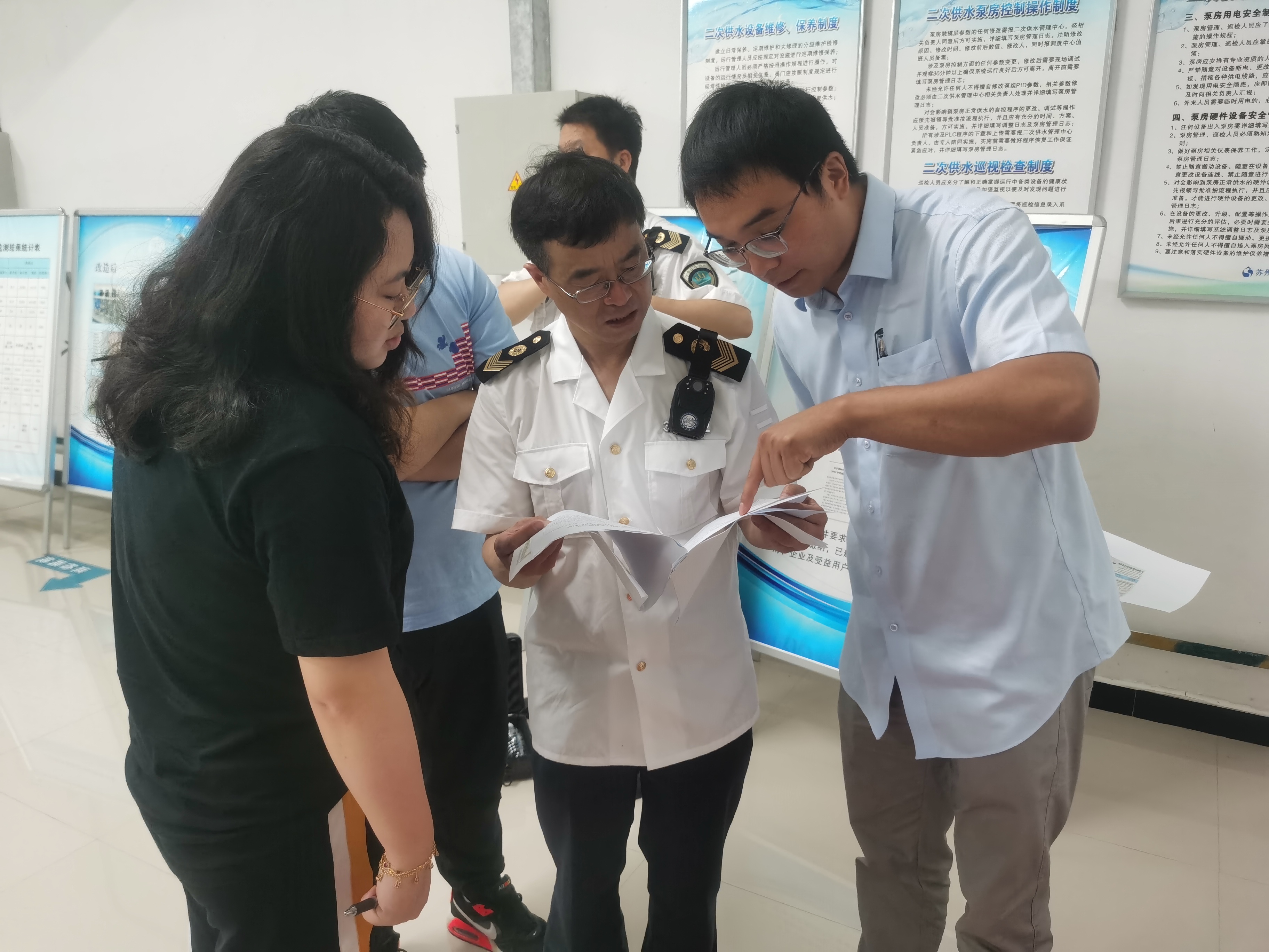 市卫生监督所检查组对二次泵房整体环境进行了全方位实地查看,两个泵房整体环境卫生情况均较好,水箱人孔均已上锁,泵房内的门禁、防盗门锁、水质在线仪表均正常运行。检查组还现场采样检测了二次供水泵房内进出水水质,指标结果均符合标准。
