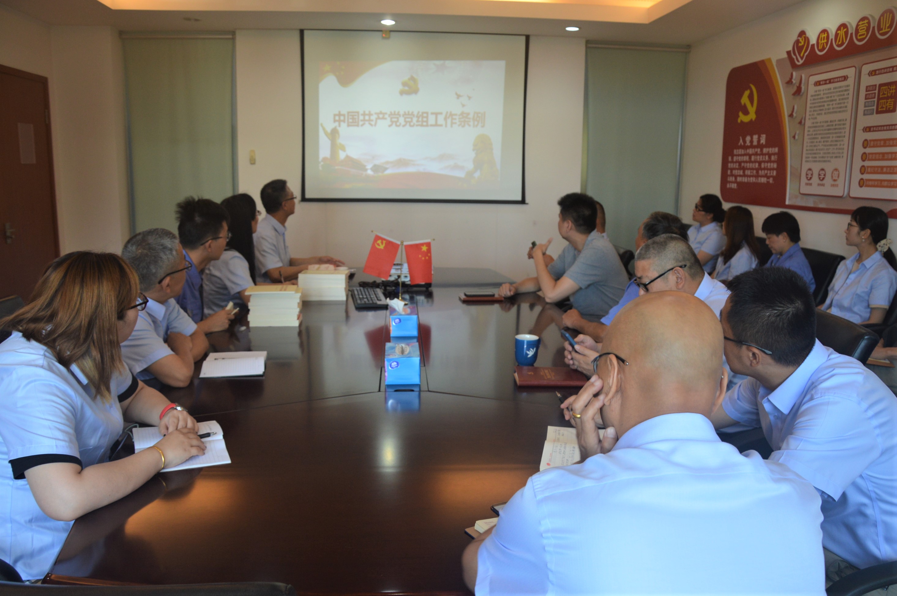 供水管网所、供水营业所联合党支部书记以“建设党组 永葆初心 永担使命”为题作专题党课,带领党员学习《中国共产党党组工作条例》, 围绕条例完善的背景意义、具体内容、及党员遵守三个方面展开学习,详细解读了党支部工作的理论、实践和制度创新成果,强调把支部组织建设抓紧、抓好,弘扬党的优良传统作风。