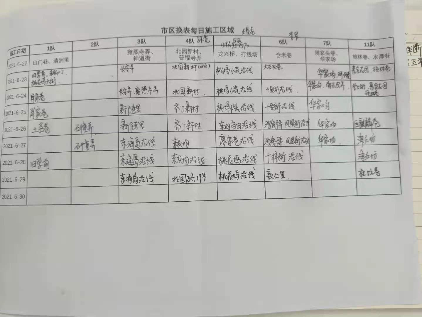 市自来水公司于今年5月中旬正式启动了“智慧水务”一期工程,计划对护城河内6万户地埋水表进行物联网水表远传模块升级改造。为确保改造工程顺利进行,供水营业所抄表科前期做足准备:一方面将需要调换物联网水表的用户名录梳理整合,同一区块内安排统一安装;另一方面,针对部分现场表位复杂区域,抄表员带领施工方逐一摸排,确保表位核实到位。截至6月底,智慧水务物联网水表已安装13853只且均已成功上线,整期施工预计在10月底完成。
