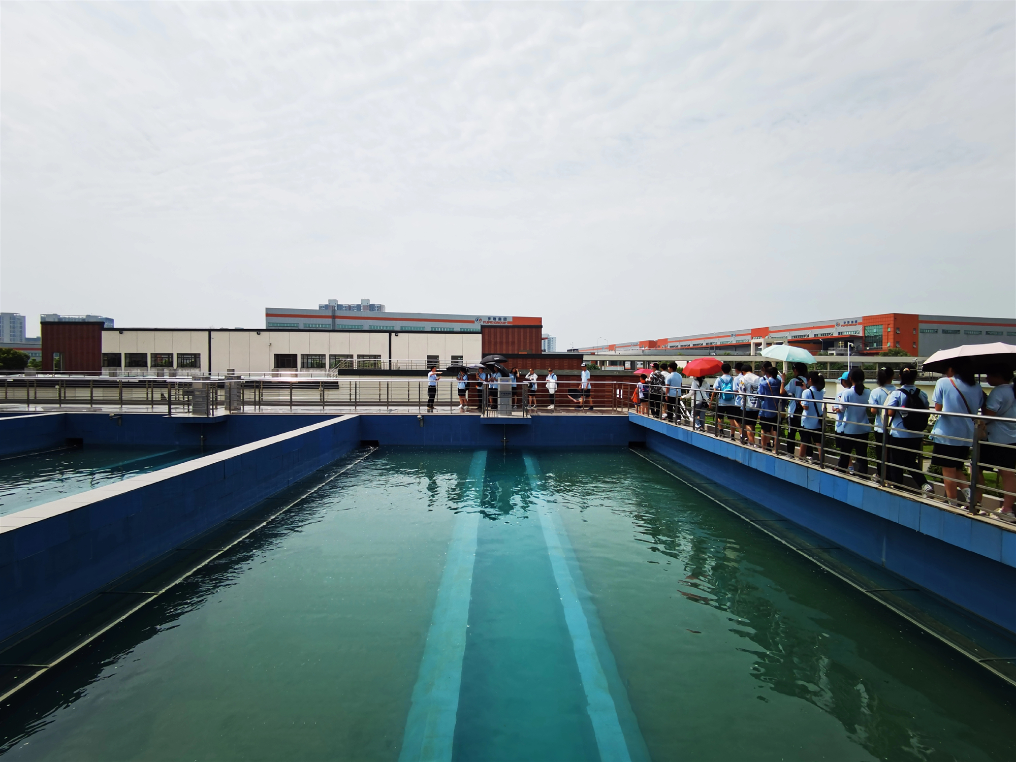 活动当天,同学们跟随水厂讲解员的脚步,先后参观了沉淀池、砂滤池、炭滤池等主要净水单体,近距离感受制水工艺流程,探索“自来水”从何而来的秘密。通过听取工作人员深入浅出的讲解,同学们初步了解了太湖原水如何演变成饮用水的全过程,感受到水资源的珍贵。在参观中,虽然烈日当头,但同学们依旧热情高涨,不断向工作人员发问,并认真做笔记、拍照记录。