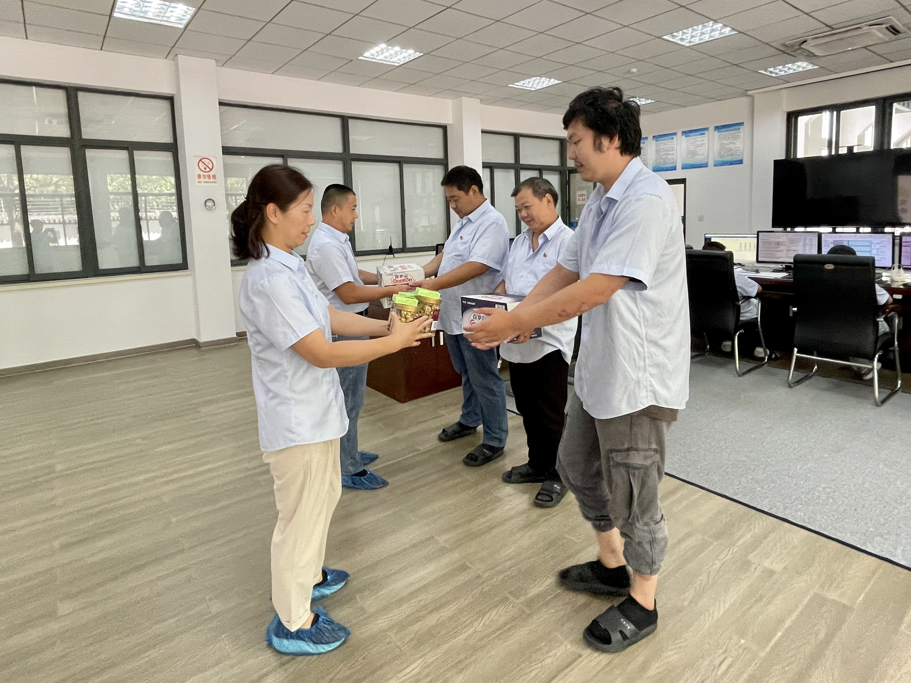 目前正值盛夏,天气炎热潮湿,为表达对一线职工们的慰问和关怀,市自来水公司胥江水厂、相城水厂与白洋湾水厂分工会采购了矿泉水、菊花茶、风油精、人丹等防暑物资,亲手送到生产一线职工和外包人员的手中。