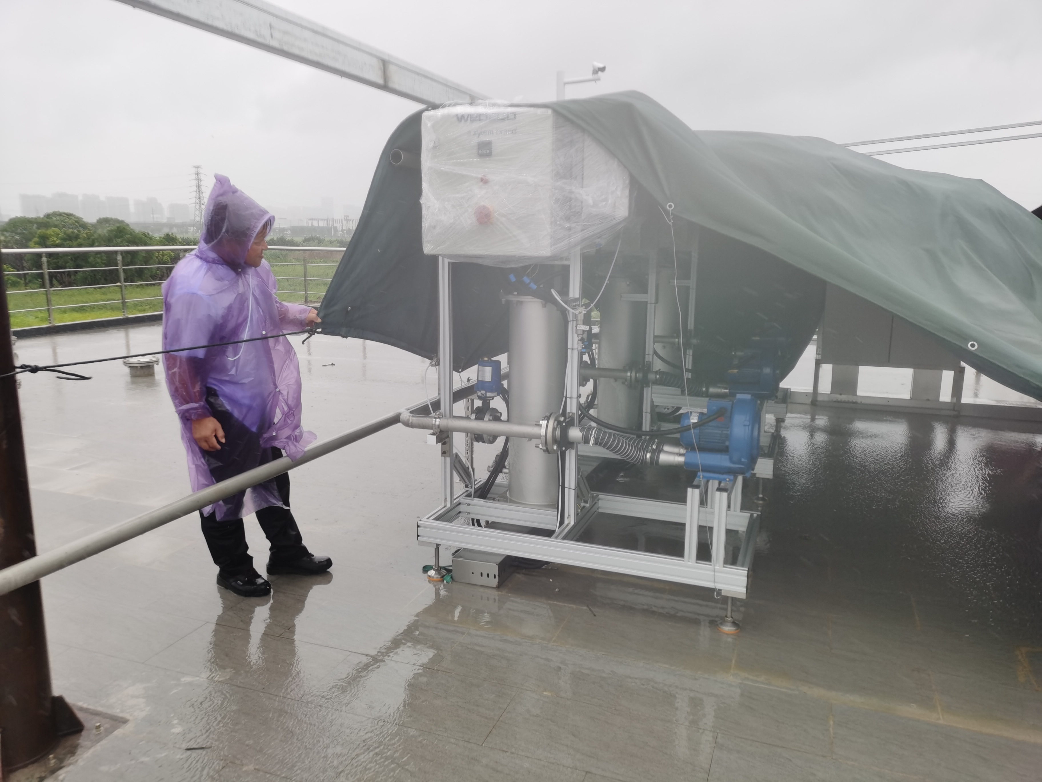 防汛防台期间,各水厂严格落实应急值守制度,业务骨干积极巡视厂区和泵站,并联合苏水实业抢修队伍在厂区和泵站分点驻守,保证信息传达时刻畅通;及时跟踪台风“烟花”移动路径,第一时间组建抢险队伍、增添发电机、潜水泵等应急设备及抢险队伍;着重对厂内主要净水构筑物,尤其是电缆沟、阀门井、雨水井等重点部位进行加密巡检。相城水厂二期工程内部防汛物资摆放到位,并对配水井等重要制水设备进行防雨膜包裹,控制好水位线,密切关注水质变化、做好工艺管控。