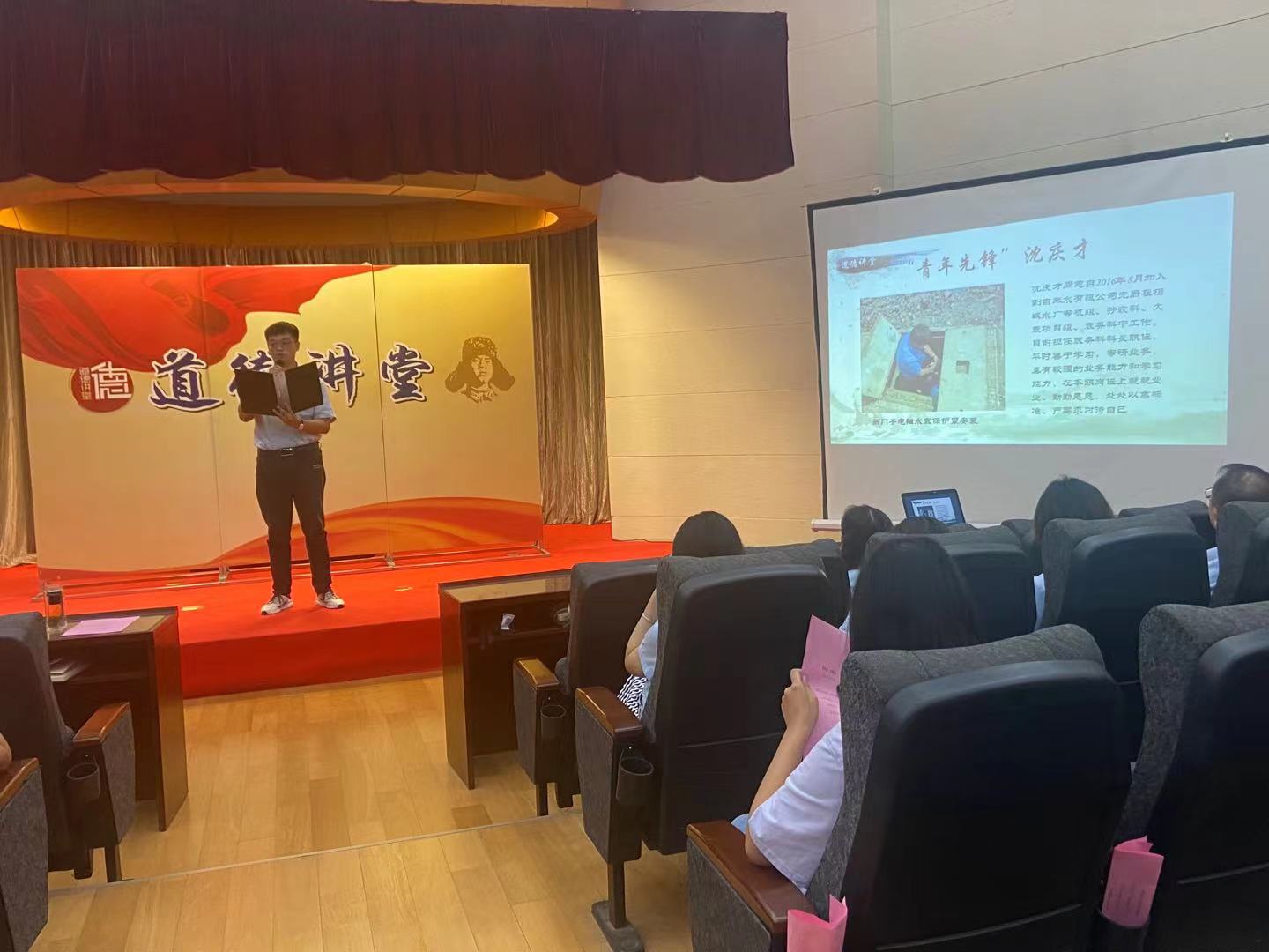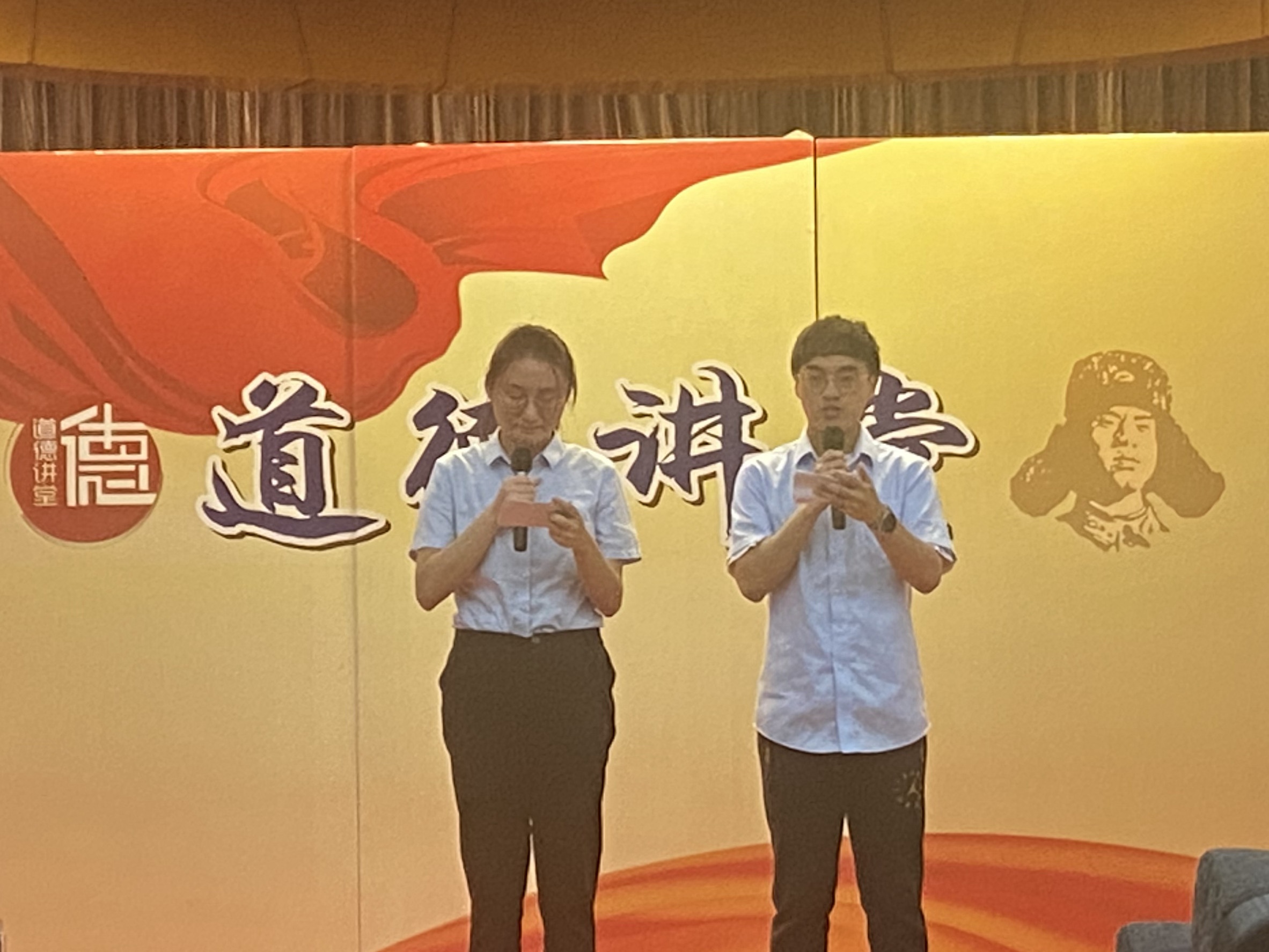本期道德讲堂以“不忘初心三问”拉开序幕,从“省己过、唱歌曲、学模范、诵经典、分享感悟、做承诺、送吉祥”七个环节深刻阐释了“追忆峥嵘岁月,争创服务新篇”的主题。歌曲《长城长》、短视频《西柏坡》让大家体悟红色经典、传承昂扬风貌;身边两位模范人物的事迹讲述激励着每个人修身立行、争做先锋;主持人还带领着大家一起诵读毛主席的经典词作《菩萨蛮·大柏地》,引发大家的交流与共鸣,并一同作出“以史为鉴,传承信仰,不忘初心,牢记使命”的庄严承诺。