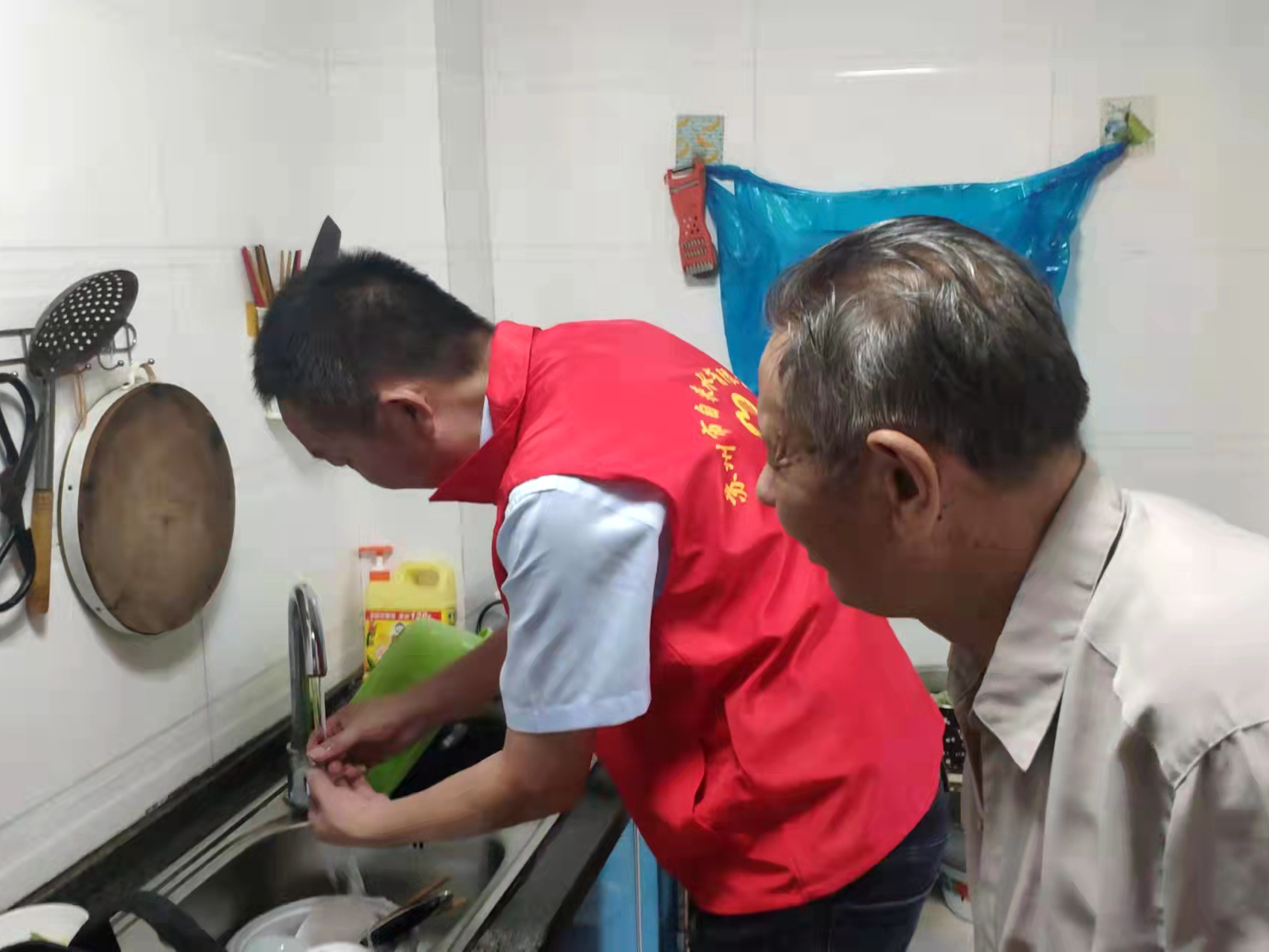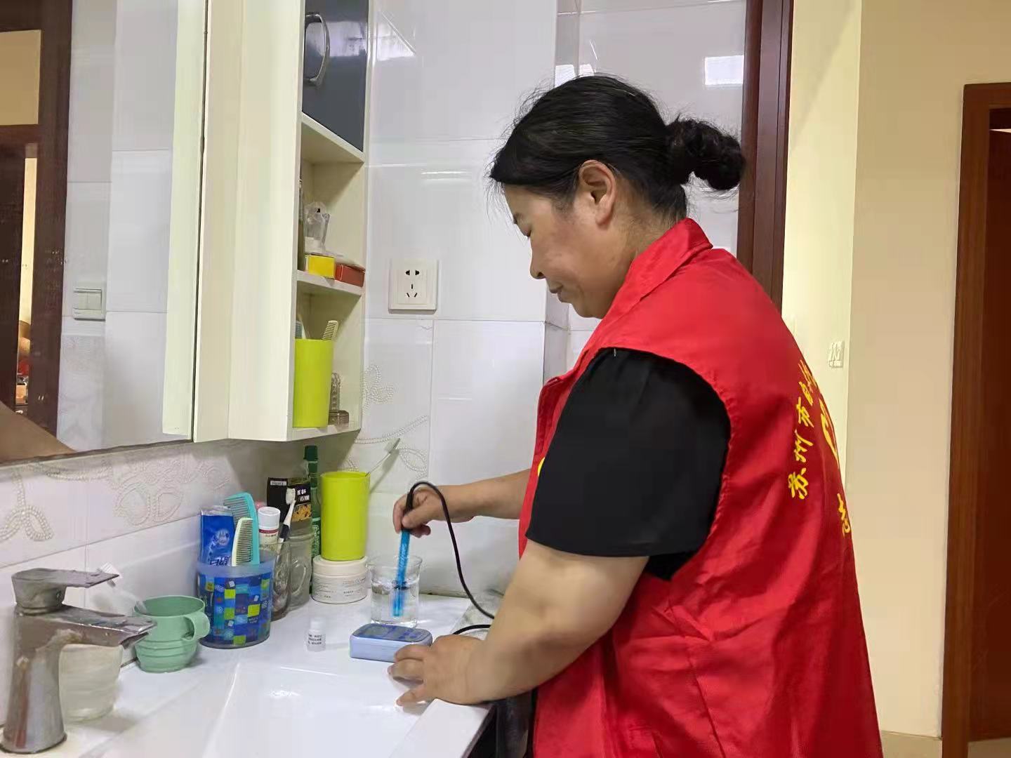 胥江水厂党员还结合自己的专业,为贫困户、老党员现场开展水龙头滤网清洗及水质检测服务。其中,社区老党员邹国治是一位退役军人,已经86岁高龄的他曾经参加过革命战斗;社区老党员王金妹今年也已91岁,曾是茶花村村妇女主任,组织过多次群众生产运动。党员志愿者们现场对水龙头进行滤网全面拆洗,并对龙头水的pH值及色度进行测定。检测结果显示:出水水质良好,完全符合生活饮用水标准。两位老党员对专业贴心的供水服务表示感谢。