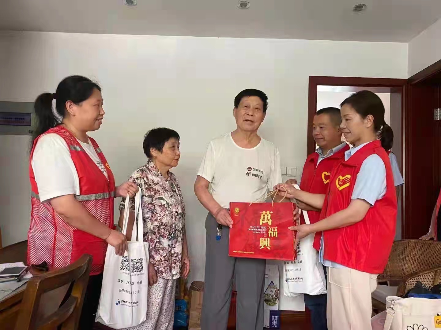 献爱重阳,情暖久久,适逢重阳节即将到来之际,市自来水公司胥江水厂党支部组织党员来到共建单位金筑社区,与社区一同开展走访慰问贫困户、老党员公益活动。慰问过程中,志愿者们送去松软暖心的重阳糕、洗衣液等生活必需品,并与帮扶对象面对面、心贴心地进行了交流,对贫困户、老党员的生活、健康等情况进行了详细的询问,并祝愿他们过上一个温暖的重阳节。