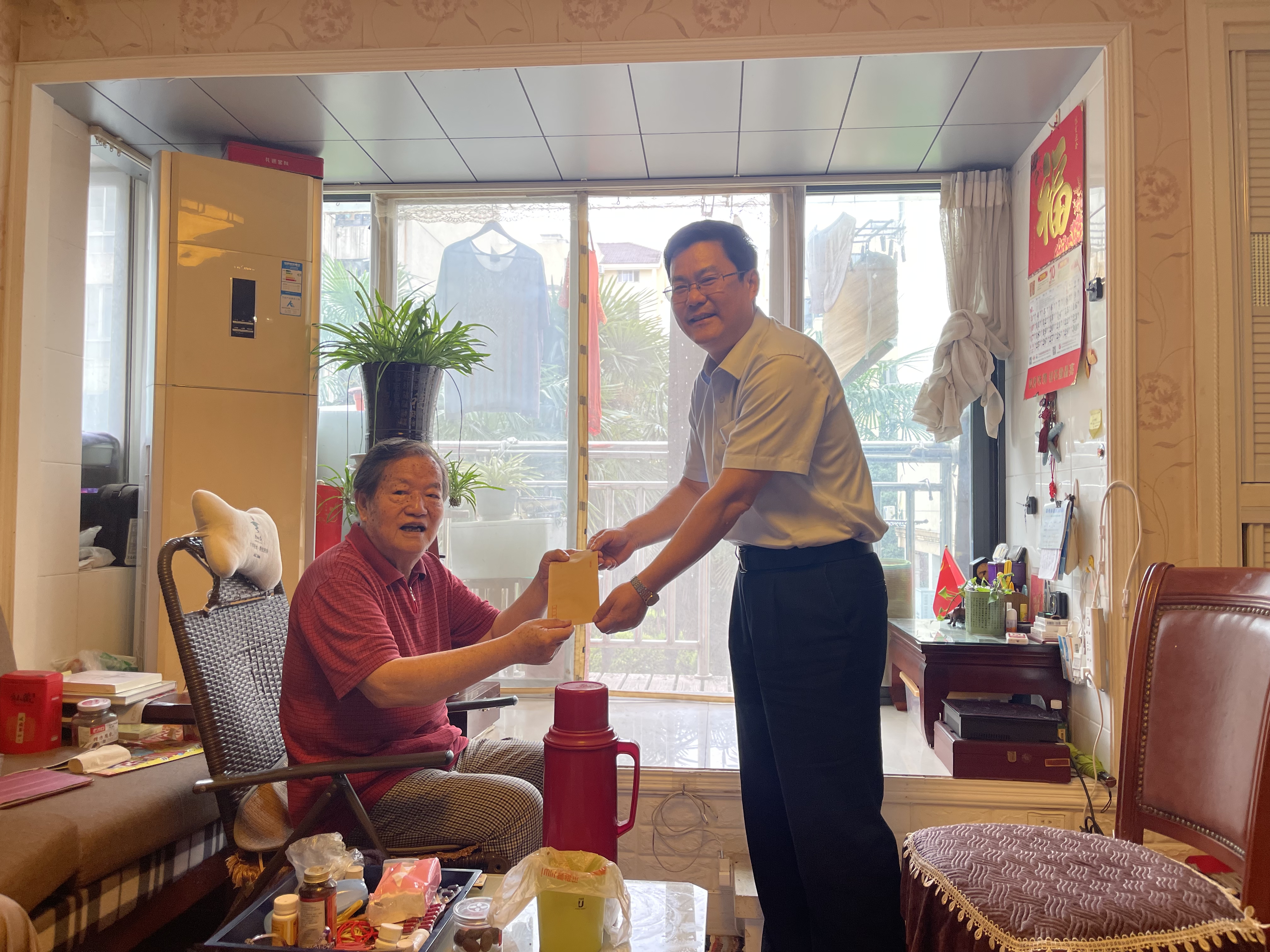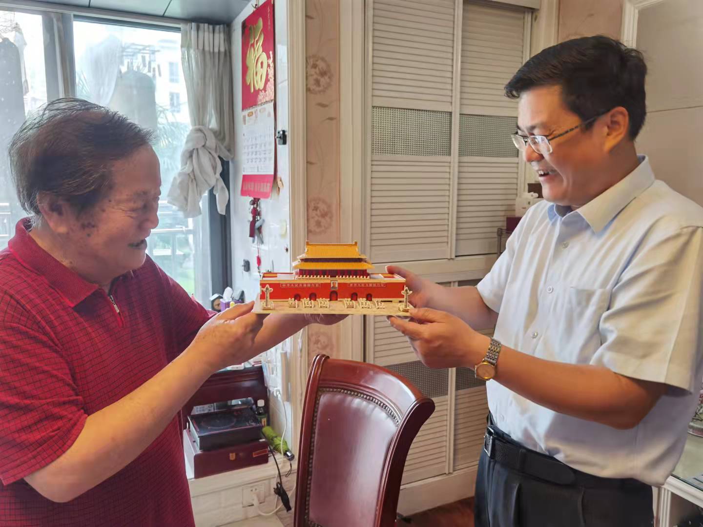 10月14日,公司党委委员、纪委书记、工会主席夏亚军带队,先后慰问离休干部卫洪彬和王克勤同志,与老干部们促膝长谈、共话家常。今年恰逢建党一百周年,卫老现场展示了自己亲手制作的天安门模型,以此表达对党的深厚感情;王克勤同志今年已有90岁高龄,在交流过程中分享了冬泳健身的心得体会,现场气氛十分祥和。夏亚军书记认真听取他们对水司工作的意见和建议,代表公司党委送上了节日慰问。对因病、因故不便登门探视的离休老干部,公司领导通过电话致意,向他们送去节日的祝福和问候。