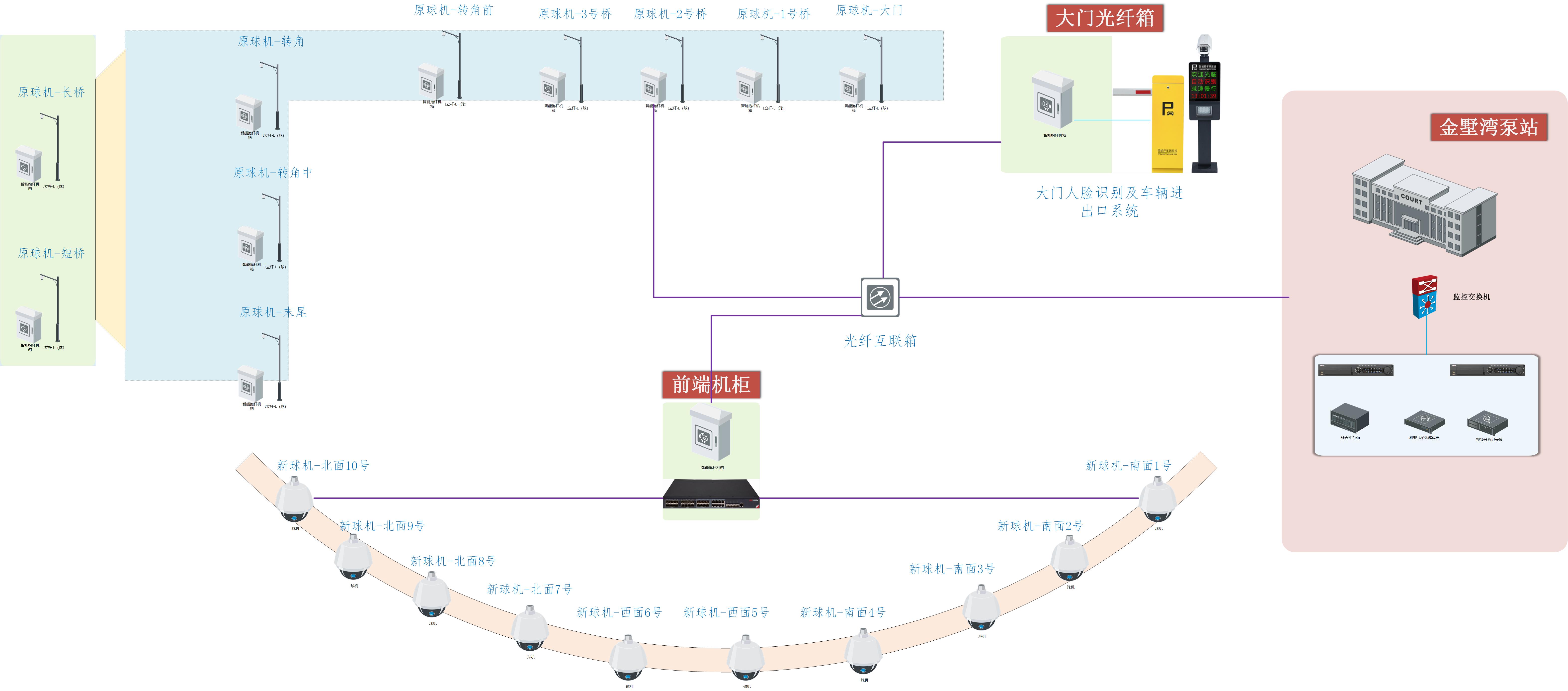 原金墅泵站视频监控系统未能覆盖取水口水面区域,泵站安防系统因采用分阶段建设、各自独立,不便于统一规范化管理。本次技改项目新增了一级保护区视频监控设备,并对泵站安防各系统进行了全面整合,建立了统一的视频信息管理应用平台,实现了系统的规范化管理。同时,项目还增设了人脸识别及车牌识别系统,有效提升了水源地整体智能防控水平。