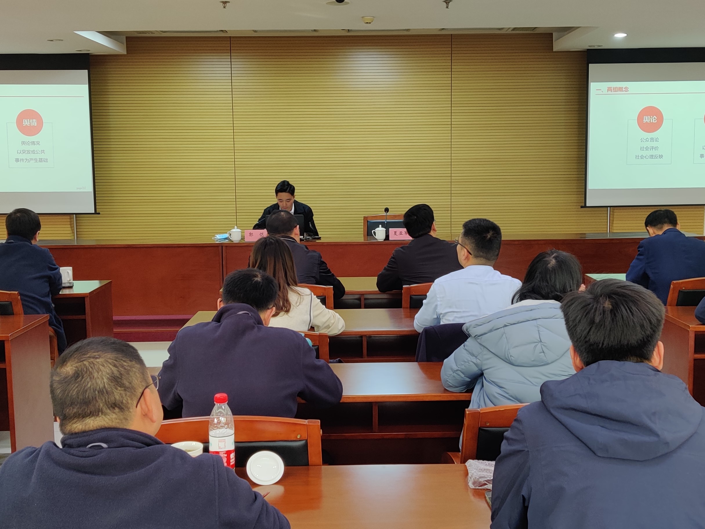郭恺处长结合自身丰富的实践经验,通过两则典型的新闻舆情案例解析,从新闻传播学的角度对政府新闻发言人制度和新闻宣传工作作了全面、深入的解读,分析了传统媒体舆论影响力和主流媒体舆论引导力所面对的挑战。郭恺处长指出,做好新闻宣传工作既要统筹全局、做好谋划部署,又要学会多方联动、做好舆论引导,不断完善协调共享、权威发布、总结评估和容错纠错工作机制,将企业的新闻发言人制度落到实处。大家认真听讲,不时参与互动,现场气氛十分热烈。