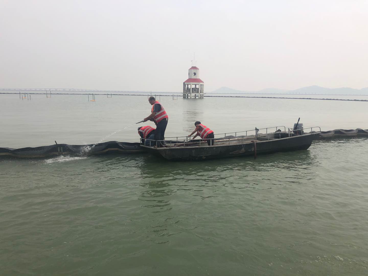 村企联建,共筑水源地生态屏障。一年多来,市自来水公司先后投入近80万元,调试安装水源地喷淋系统、曝气系统、推流系统等多项防藻设备,指导作业人员在高藻期开展了多轮蓝藻应急精准打捞,有效防止藻类在保护区内聚集。东蔡村项目人员定期对防藻围栏提供高效的检查清洗,提升除藻效果。合作以来,保护行动累计出动船只700余次,投入人员1400余人次,在双方协作配合和共同努力下,渔洋山水源地一级保护区水源水质持续保持平稳优质,为守好“水质安全第一关”奠定了坚实基础。