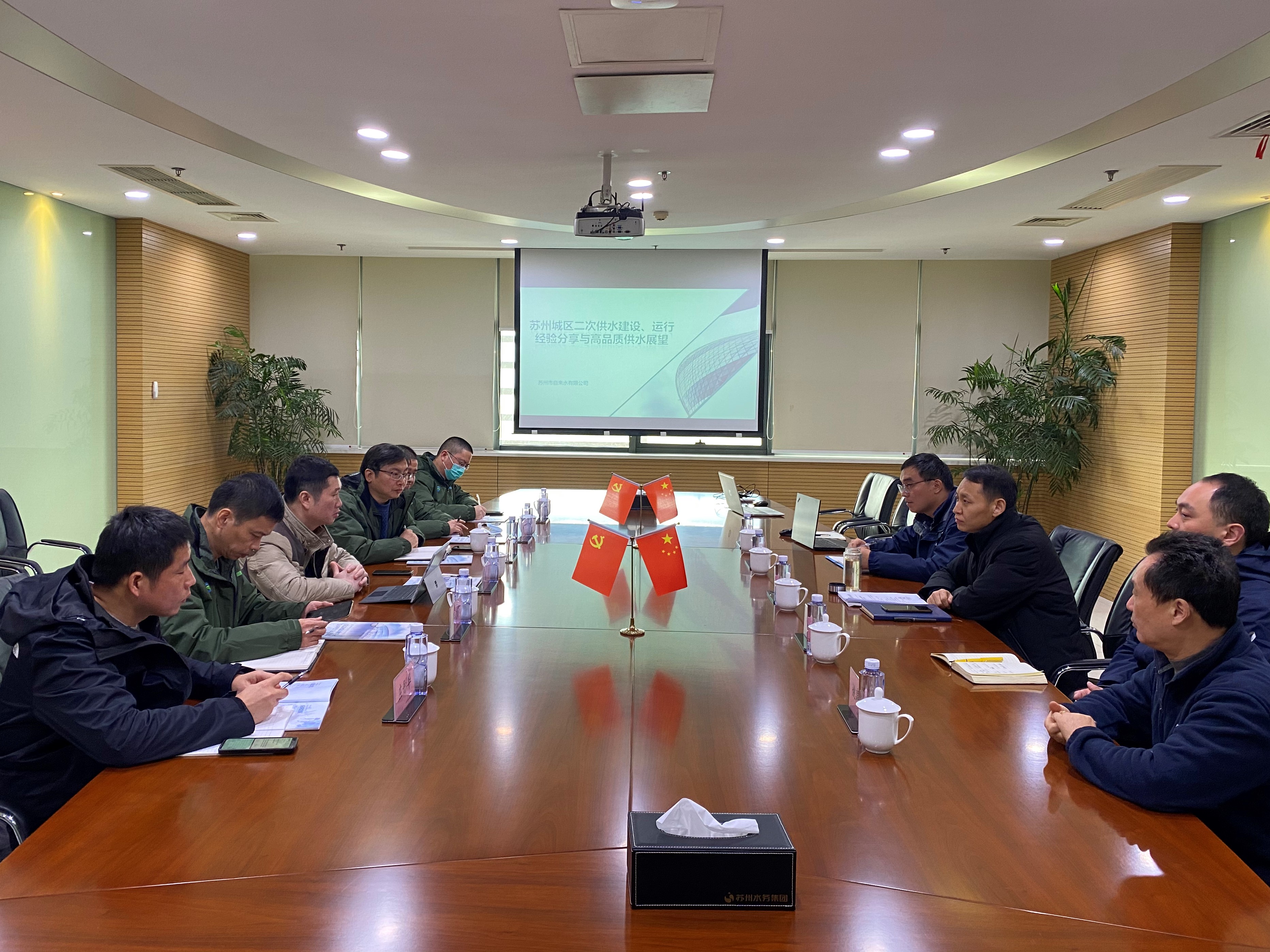 近日,江苏江南水务股份有限公司一行6人赴市自来水公司调研二次供水泵房建设,公司党委党员、副总经理蒋福春随行陪同。