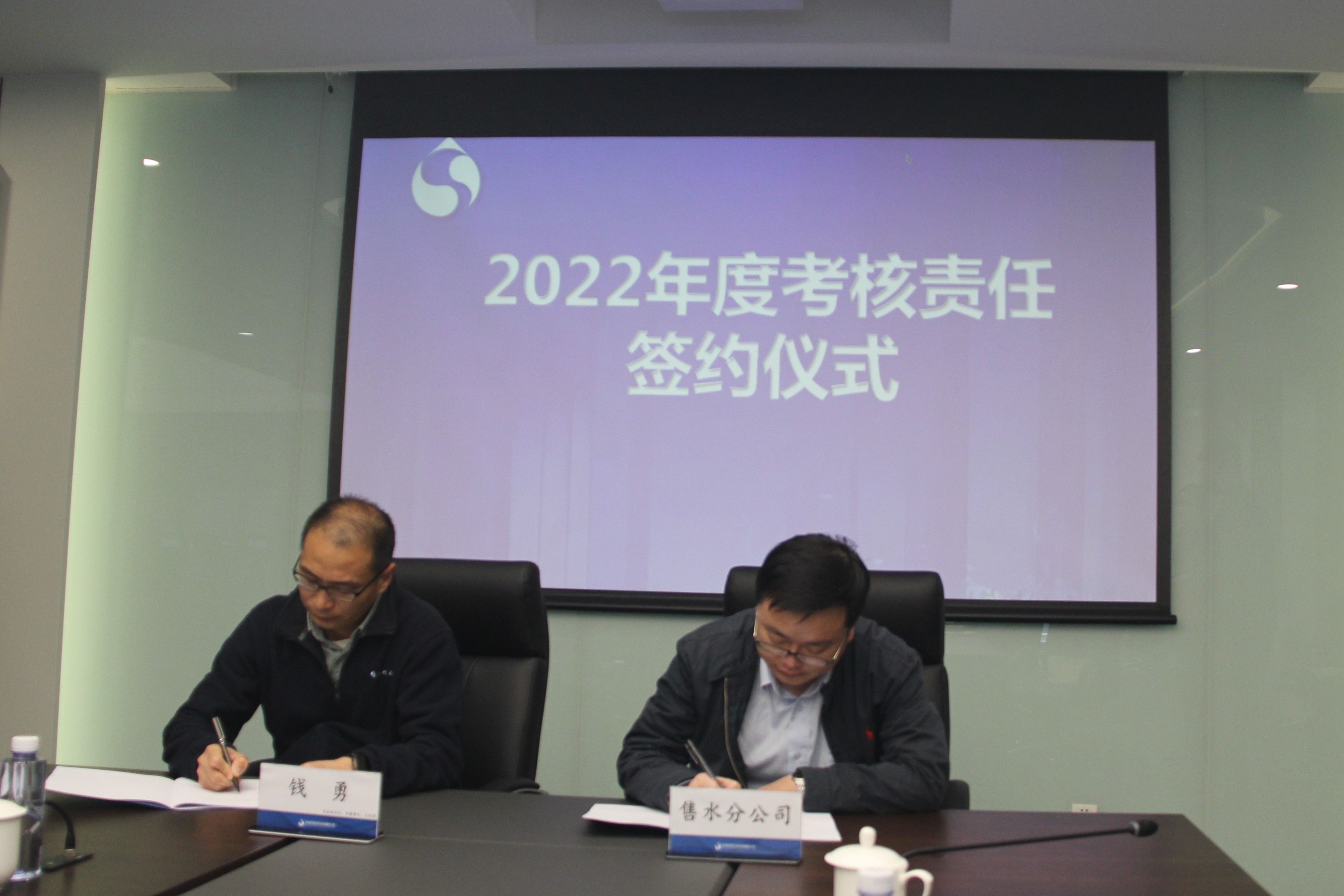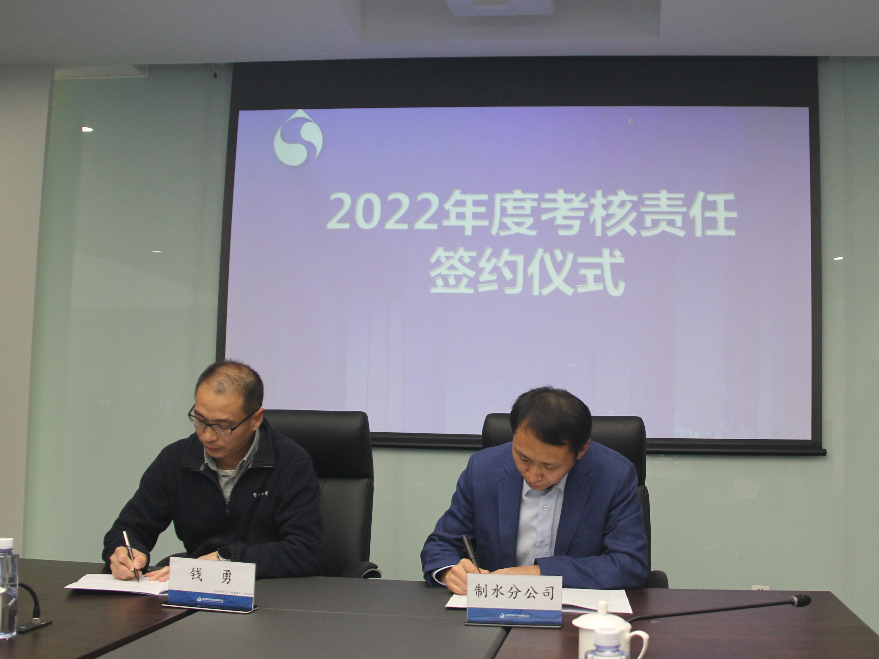 3月16日,市自来水公司党委副书记、副董事长、总经理钱勇代表公司经理室,与制水分公司、售水分公司签订了《2022年度经营业绩责任书》。公司领导班子成员出席签约仪式。