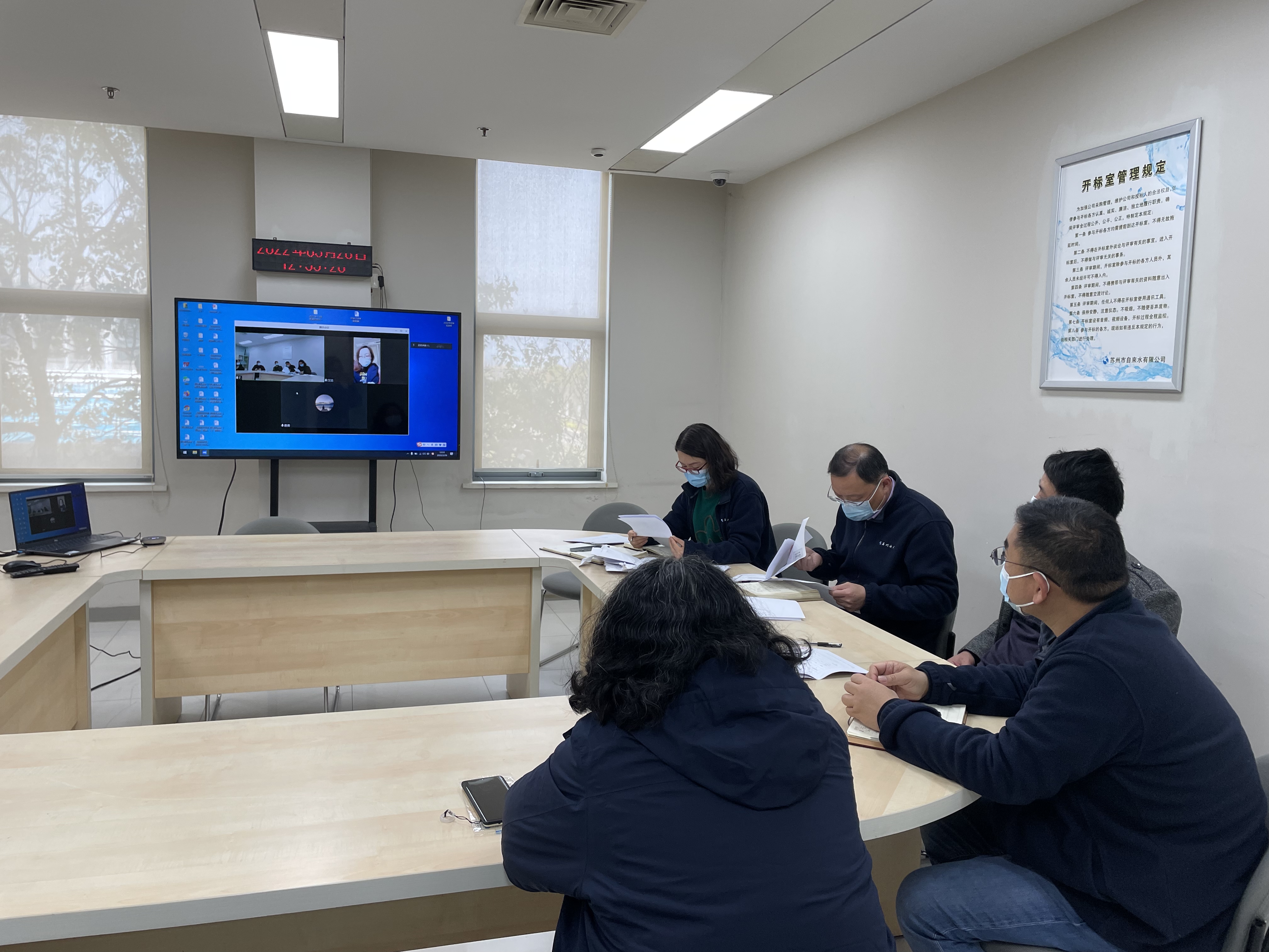 3月28日,“臭氧系统备品备件采购”“鼓风机大修”等单一来源项目在公司208开标室远程竞谈,通过网络会议,采购方代表、评审委员与上海等地供应商就服务标准、投标价格等内容进行了线上交流与谈判,并最终达成一致意见,确定成交价格。