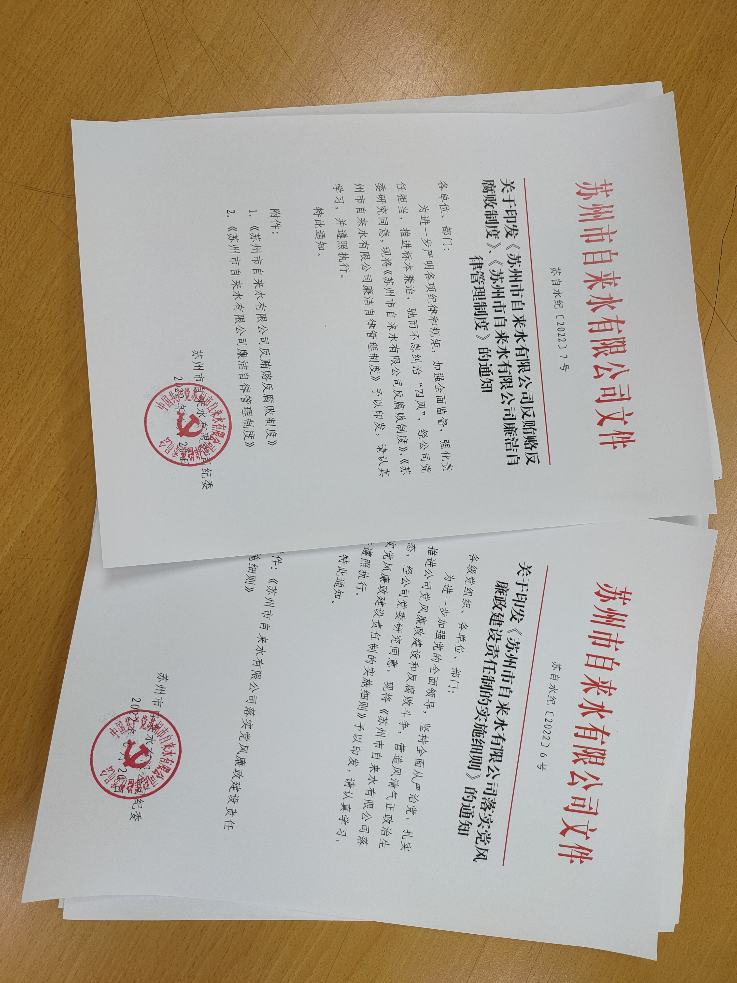 近期,公司相继制定出台并组织学习了《反贿赂反腐败制度》、《廉洁自律管理制度》及《关于落实党风廉政建设责任制的实施细则》三项制度,用严密的制度笼子推动形成不逾矩、不破纪,不越底线、不触红线的从业氛围,不断提升干部职工捍卫制度意识,提高制度执行力。