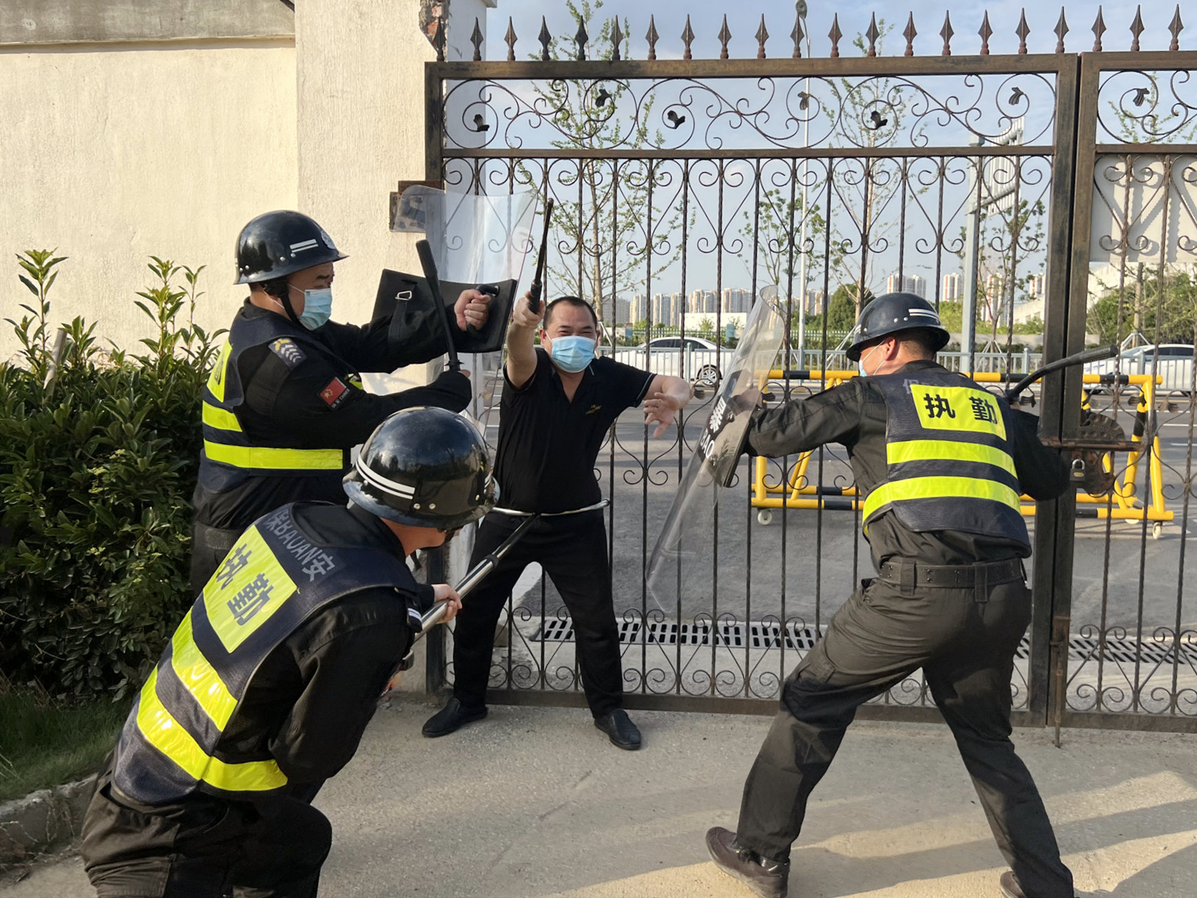 总指挥一声令下,实战演练拉开帷幕:监控值班人员接到电子围栏16防区北大门地段报警,发现可疑人员试图翻越铁门入侵厂区,随即组织安保力量赶赴现场,启动CK报警系统与公安机关取得联系,可疑人员第一时间得到控制,应急状态解除。
