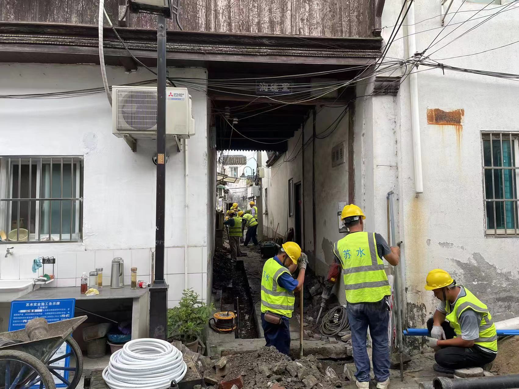 今年4月开始,随着工程项目陆续开工,售水分公司积极配合“三线入地”和姑苏区住建委老新村改造项目,同步开展改造区域内老旧管网改造工作,将主管由原来的年份较长的灰口管更换为球墨铸铁管,支管由原来的衬塑钢管改造为不锈钢管,进一步提高了居民的用水安全。现已完成蒋家弄、润德里和蒋家墙门等改造项目,老虹村等区域施工正在稳步推进。