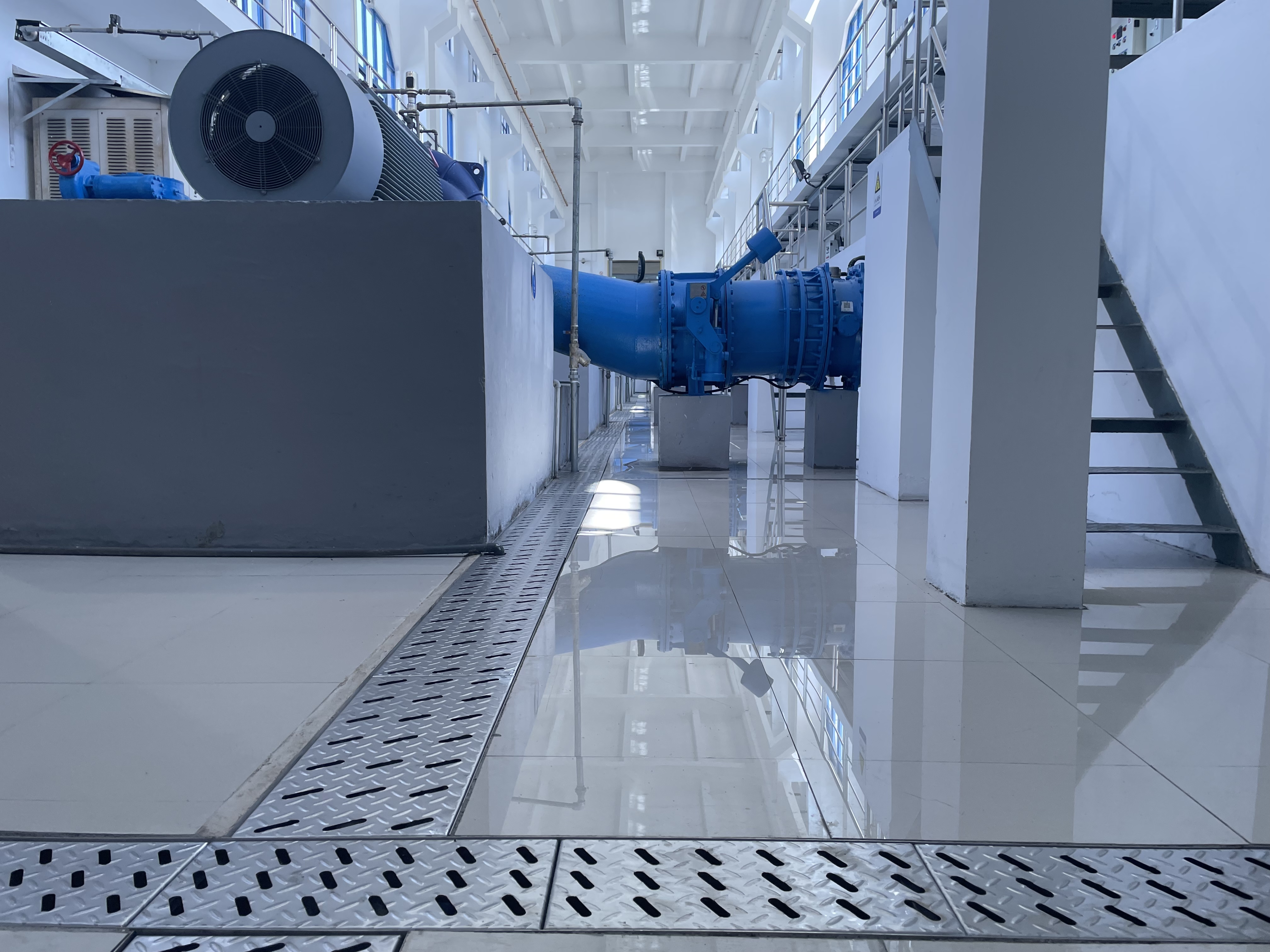胥江水厂厂区建筑物不锈钢盖板加装项目自年初进场施工以来,受新冠疫情的影响,工程进度一度暂缓,待复工后,该项目第一时间恢复建设。整个项目内容包括对沉淀池排泥沟、配水井以及渔洋山泵房电缆沟、排水沟铺设不锈钢盖板,同时在渔洋山泵房水质仪表间加装不锈钢装饰柜。通过改造,厂区环境整洁明亮,焕然一新。