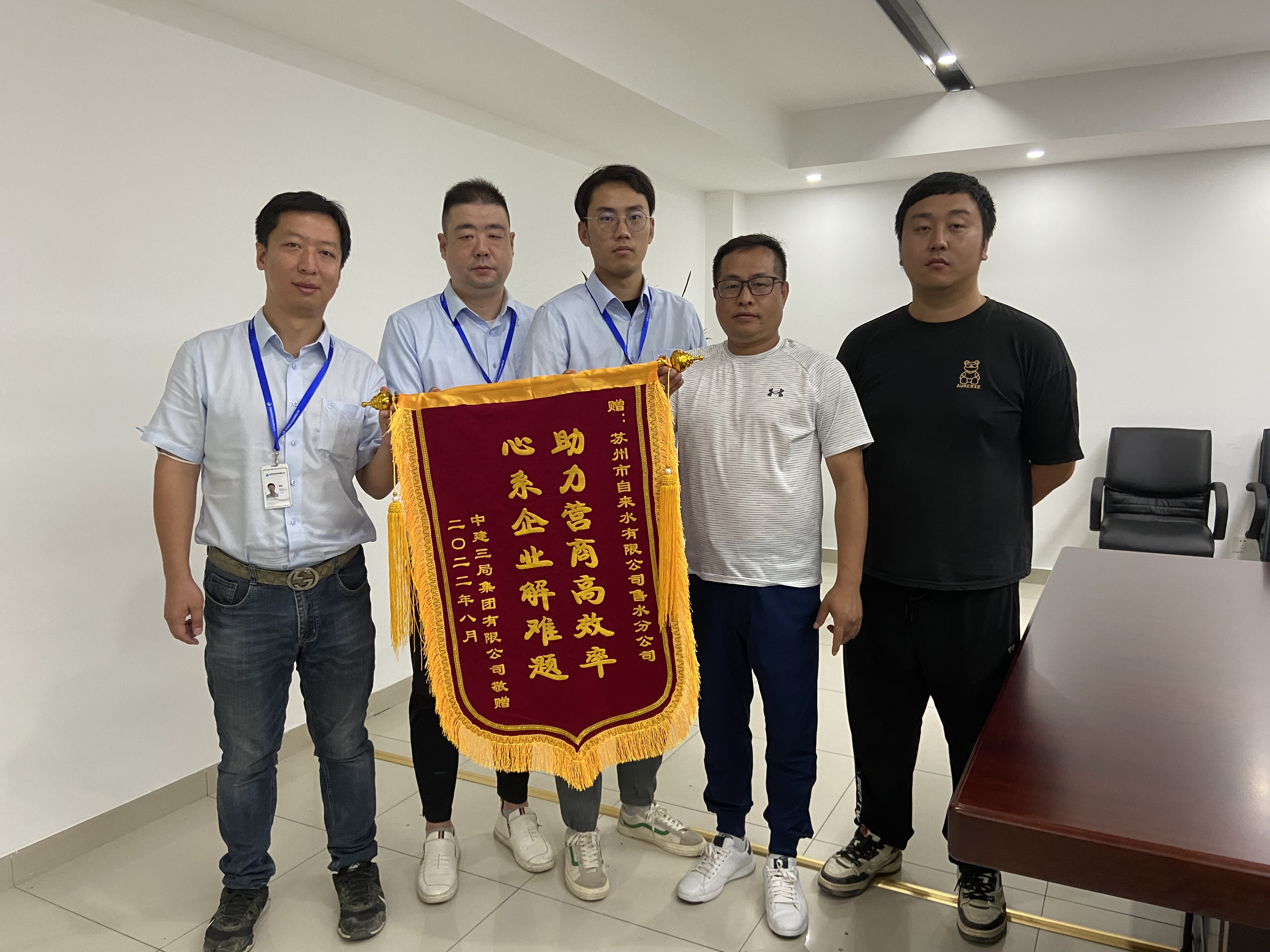 近日,中建三局集团有限公司向江苏省城市足球赛官网售水分公司送来一面写着“助力营商高效率,心系企业解难题”的锦旗,以表达对公司高效服务的感激之情。