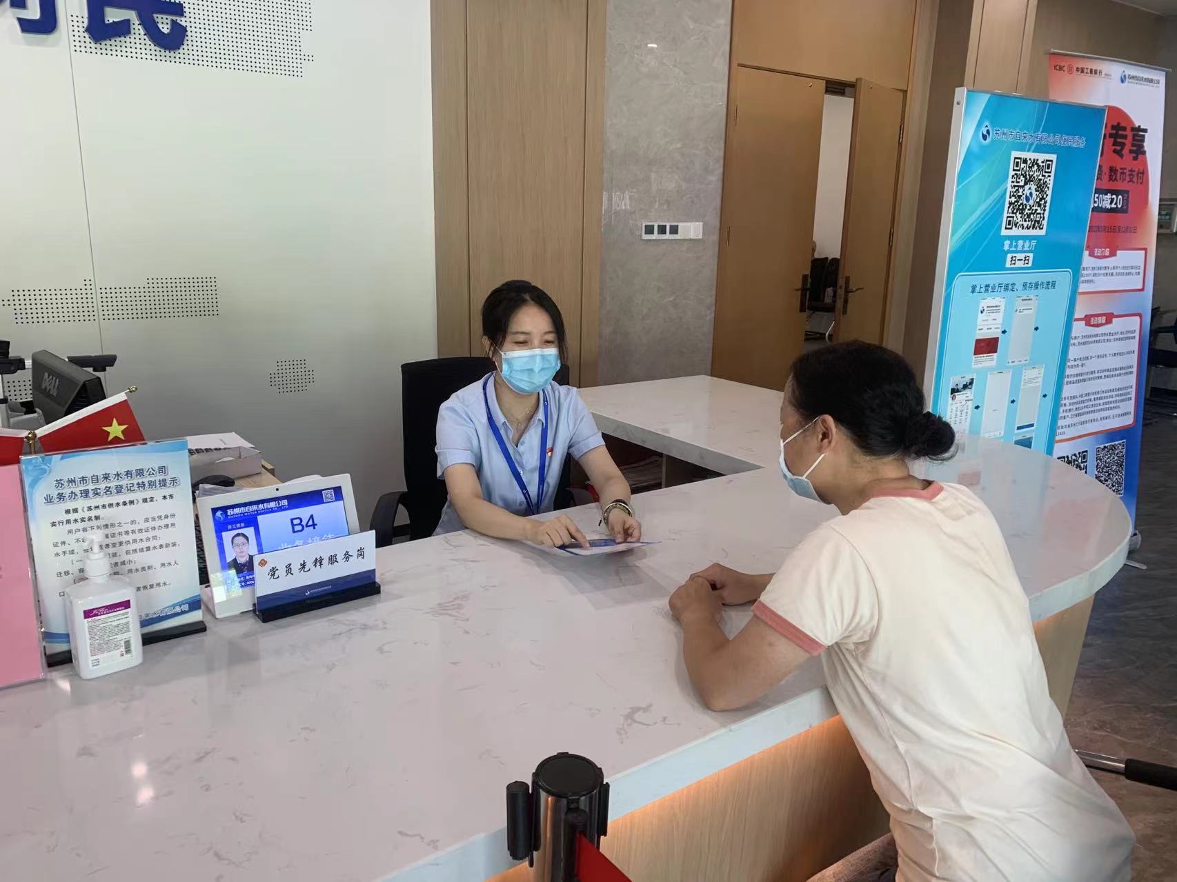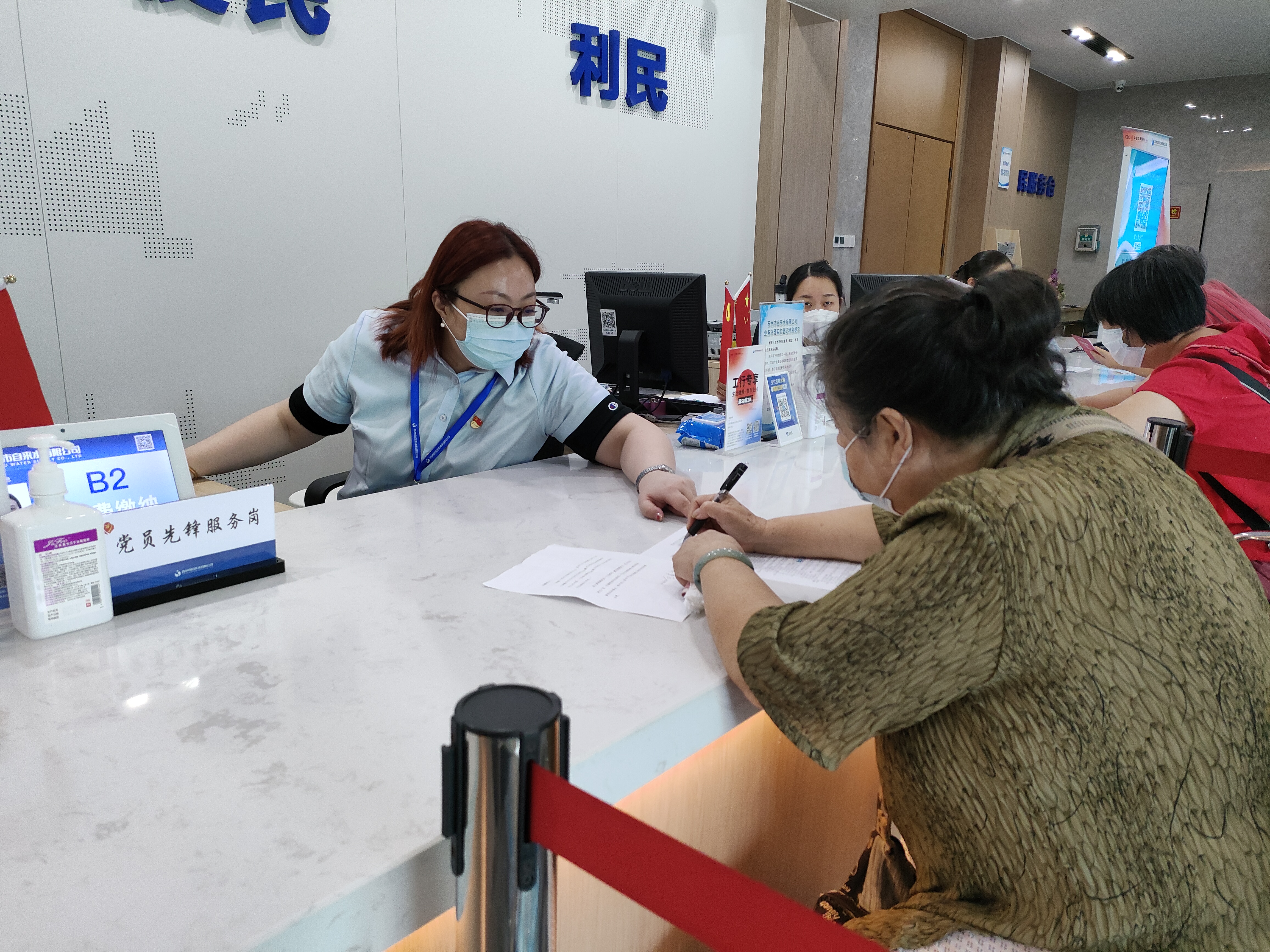 为进一步增强职工优质服务意识、提升群众办事体验幸福感,售水分公司持续推进“党业融合显成果 党员队伍作先锋”党建系列活动,第二期“党员先锋服务岗 红色精神在一线”正式开展。售水分公司女党员“戴党徽、摆桌签、亮身份”,积极参与营业大厅“党员先锋服务岗”轮岗活动。