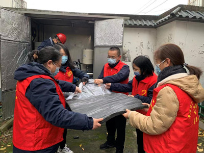 翠园新村一体化增压泵房位于室外,为保障泵房内的设备设施在冰冻天气下正常运行,制水分公司党支部联合科室第一党支部携手给泵房穿上“保暖衣”。党员们冲锋在前,拿出了“拼抢争”的精神,分工协作,多点发力,有人现场“量体裁衣”,剪裁出合乎泵站门板尺寸的铝箔泡沫板,有人张贴剪下保温材料,有人整体加固保温材料……在大家的齐心协力下,历经两个小时就完成了所有工作。看着“穿戴好棉衣”的一体化增加泵房,附近居民展开了舒心的笑容。
