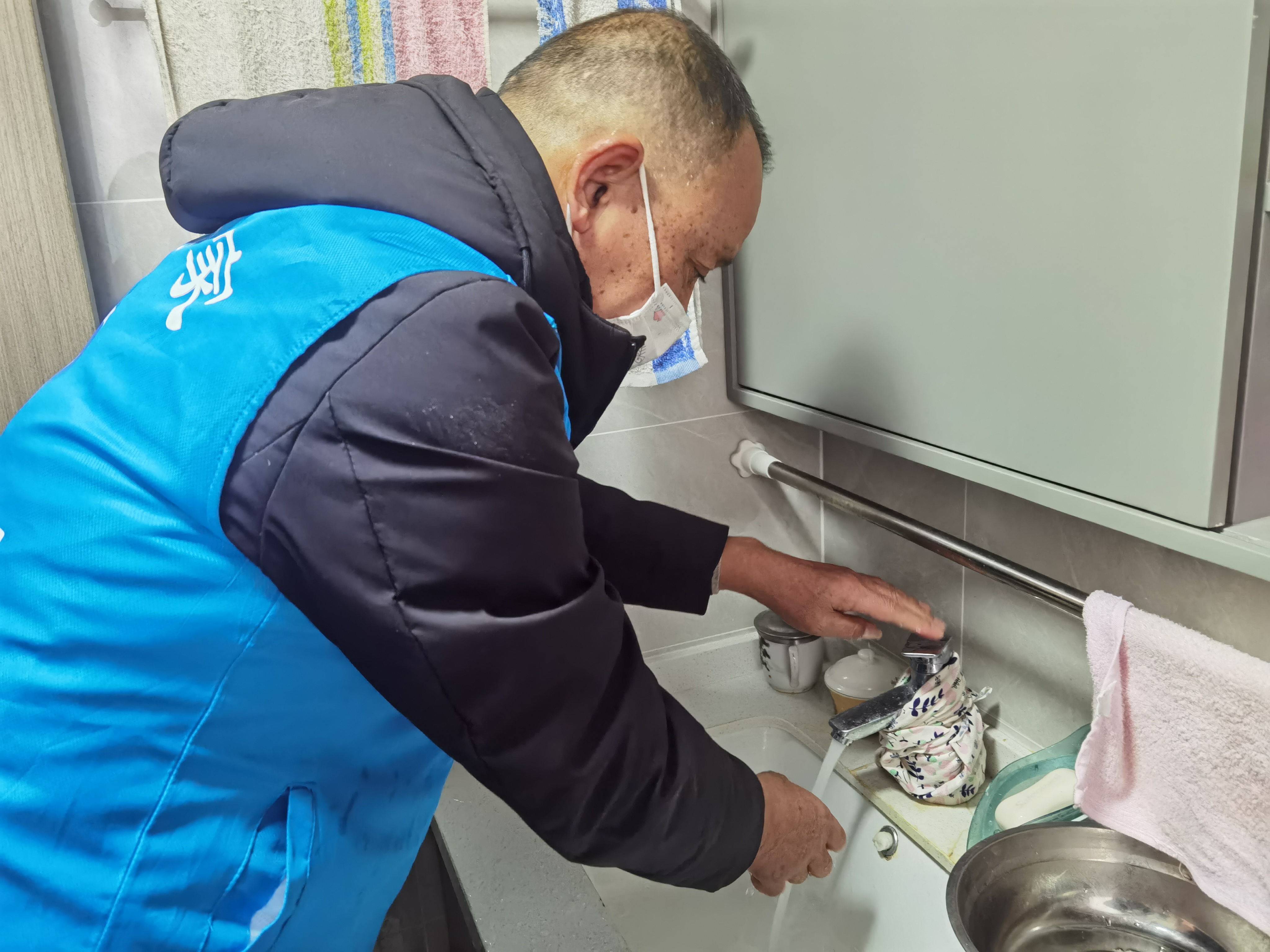 天刚蒙蒙亮,“水管家便民服务中心”的陈建中师傅就穿着蓝马甲穿梭在姑苏区的大街小巷开始一天的工作了。这天,他主动请缨前往东港一村,积极入户排查管道漏水问题,主动向用户宣传水表包裹方法,讲解“滴水成线”的相关防冻知识,老百姓们连连点头称赞,纷纷对陈师傅竖起了大拇指。