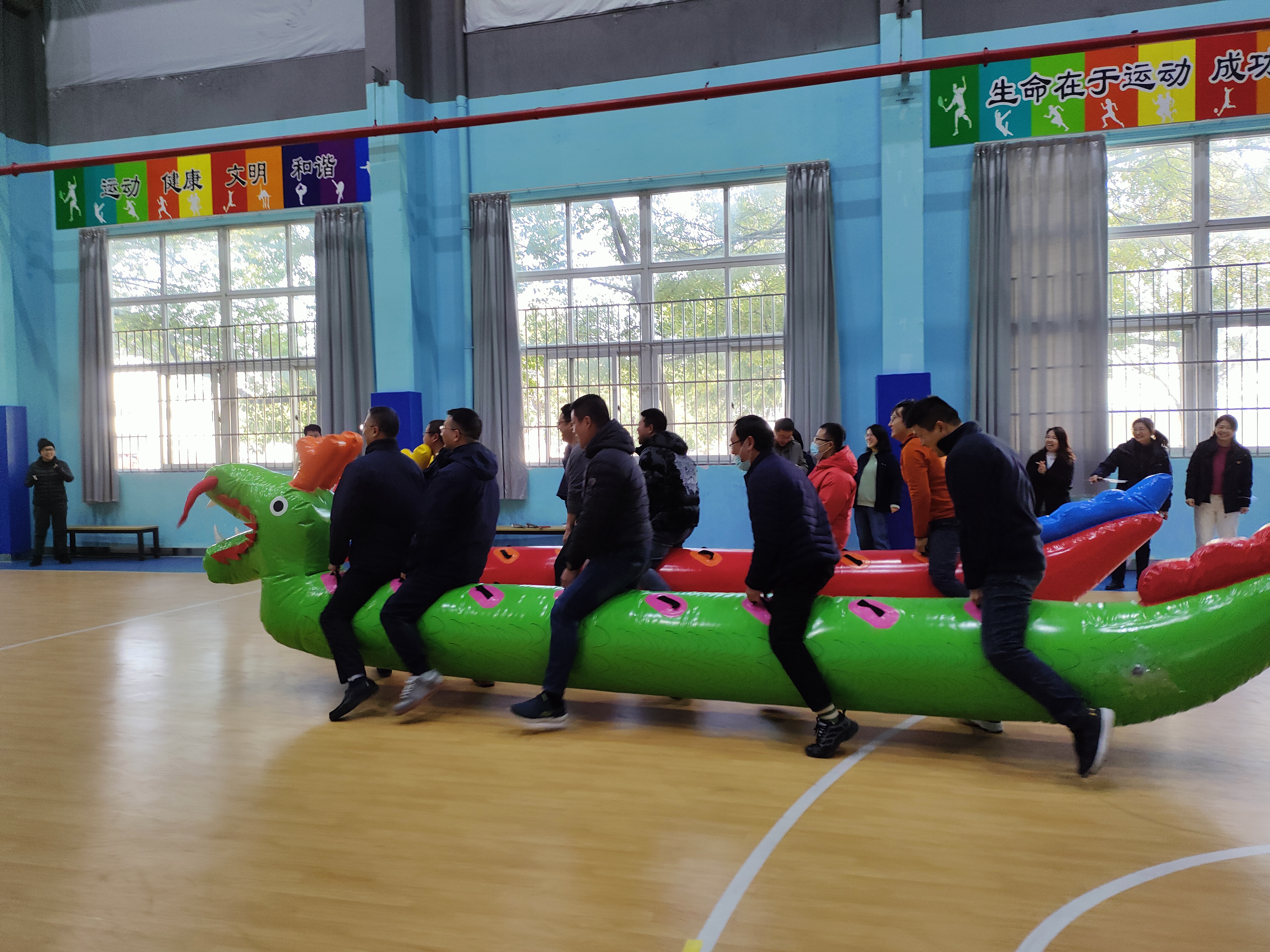 售水分公司场地张灯结彩。党建活动中心职工们集体观看春节贺岁电影,组织开展迎新春“桌游”、“掼蛋”友谊赛、包饺子活动。“陆上龙舟” “音乐椅子”“定点投篮”“乒乓颠球”等多项趣味活动在传承中华民族传统文化同时也让职工比出浓浓的年味儿。