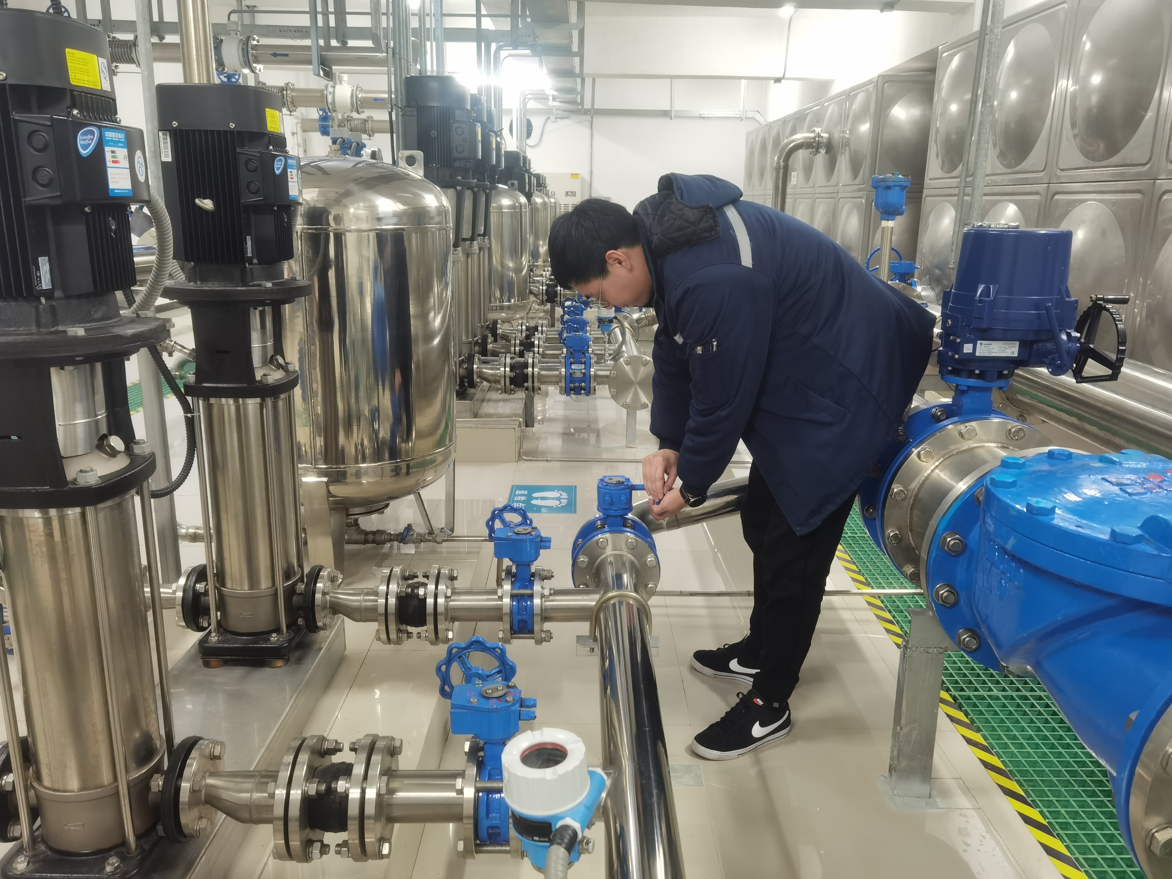 针对今年春节期间寒潮来袭、气温骤降等情况,公司及时启动《抗寒保供专项应急预案》,对取水口水温进行在线监测,及时掌握水质、水温等信息,确保源头供水优质稳定。运控中心充分运用调度系统,实时监测供水区域管网压力变化、天气变化,结合市民用水量,合理调配、优化运行,平缓调压。各水厂严格执行24小时值班制度,严格落实危化品、药剂、消防器具管理机制,加密水质检测频次,加强重要制水设备及二次供水泵房巡检力度,保证出厂水优于标准,寒潮期间积极配合限时性供水举措。相关业务部门提前深入社区,做好供水设施巡查和保温防冻工作,春节期间安排100余人应急抢修队伍、40辆抢修车做好准备。寒潮期间全员返岗,管网闸门维修及便民维修、物资供应等部门安排专人值班,及时处理居民需求。11个薄弱区域采取限时性供水举措,最大限度避免水表、水管冻裂,“水管家”们确定消火栓取水点位置,应急送水上门,确保居民用水安全。